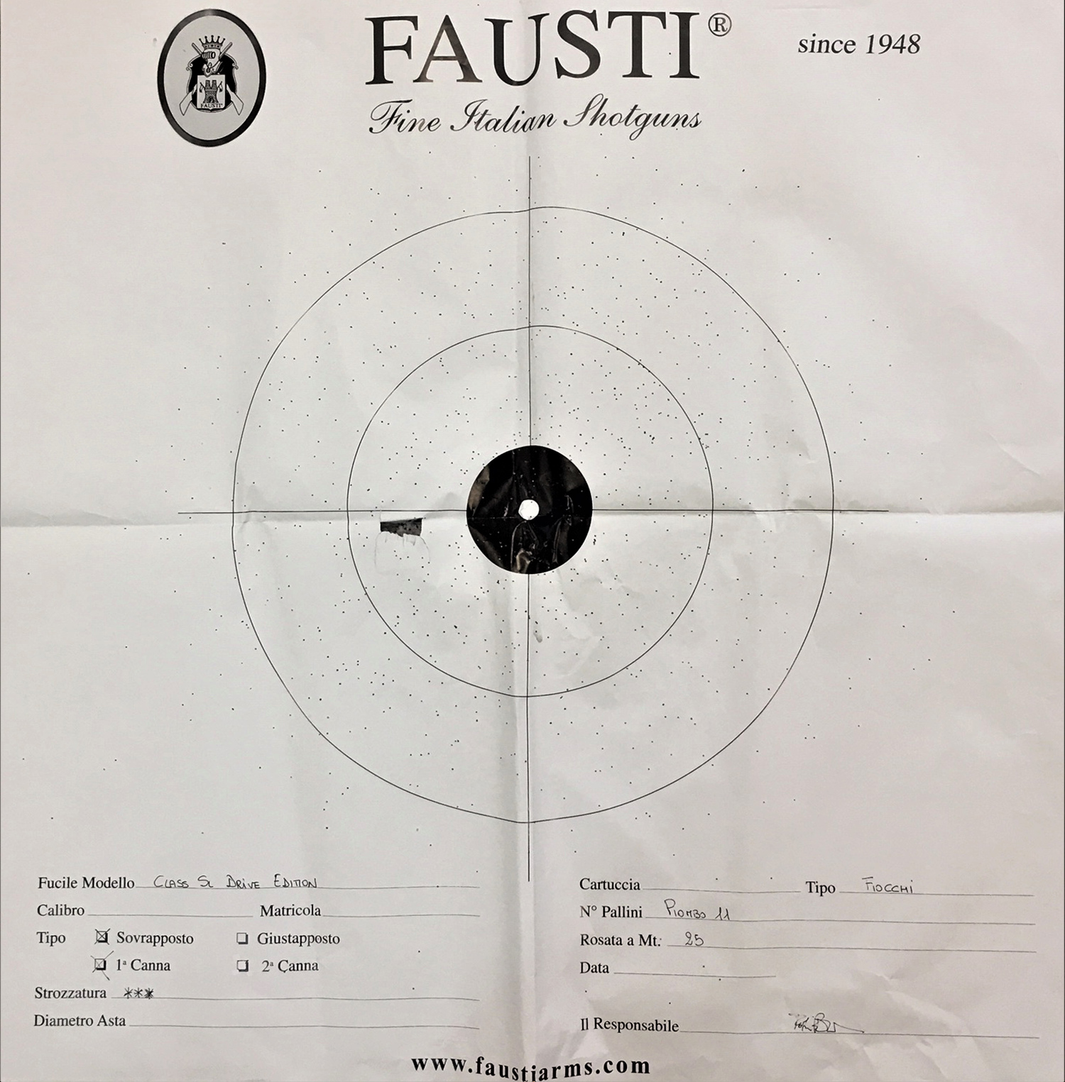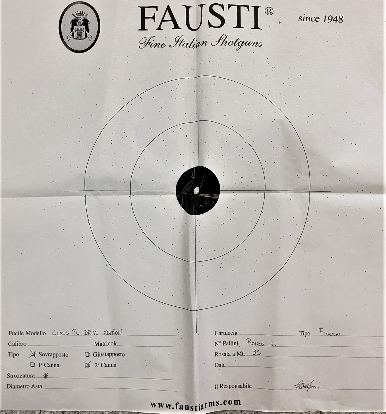La prova pratica è stata realizzata nel tunnel interno all’azienda, dove i due Fausti Class SL Drive Edition in calibro 20 hanno sostenuto alcune prove a fuoco così che potessimo valutarne le capacità balistiche nella classicissima prova di rosata. Abbiamo sparato a 25 e a 35 metri con le strozzature dell’arma (due e una stella), con cartucce Fiocchi calibro 12 caricate con piombo numero 11. In entrambi i casi la distribuzione dei pallini appare convincente e, con la giusta numerazione, in grado di intercettare efficacemente il volo di qualsiasi selvatico.