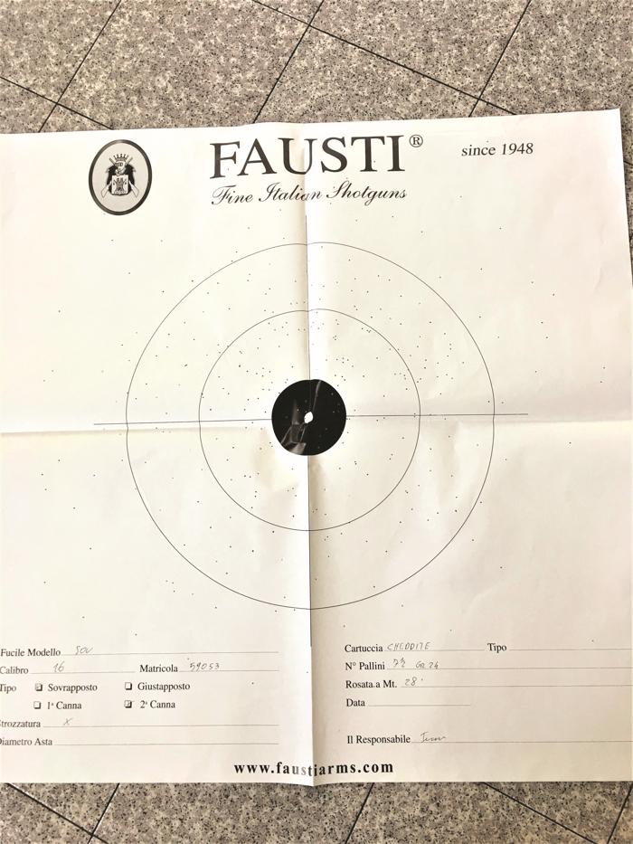 Il fucile è stato testato nel tunnel interno di Fausti a 22 e a 28 metri, rispettivamente con strozzature tre e una stella, quelle del fucile, con una cartuccia Cheddite Drago da 24 grammi di piombo numero 7 e ½. Le rosate ottenute, sia pure con un leggero spostamento del peso di rosata verso l’alto (mea culpa), evidenziano un’ottima distribuzione dei pallini. Segno indubbio che non si deve avere alcuna remora nell’utilizzo del calibro 16. Il peso dell’Italyco in calibro 16 si attesta a 2.780 grammi, un valore perfetto come equilibrio fra valore numerico e agilità dell’arma; già il calibro 16 risulta molto maneggevole e istintivo come puntamento, ma con un valore abbondantemente sotto i tre chili si possono sparare le dosi massime per questo calibro, o semplicemente la dose standard di 29 grammi, con piacevolezza.