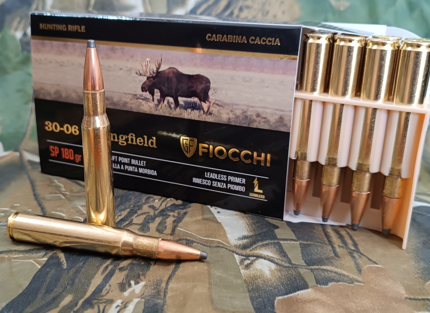 In questo calibro Fiocchi propone due allestimenti di carica, con palla di 150 grani, corrispondenti a 9,71 grammi (codice 703001), e 180 grani, corrispondenti a 11,66 grammi (codice 703002). Quelle che ho testate in poligono (numero lotto 6301001-001-6041-6188) erano dotate di proiettile dalla massa maggiore.