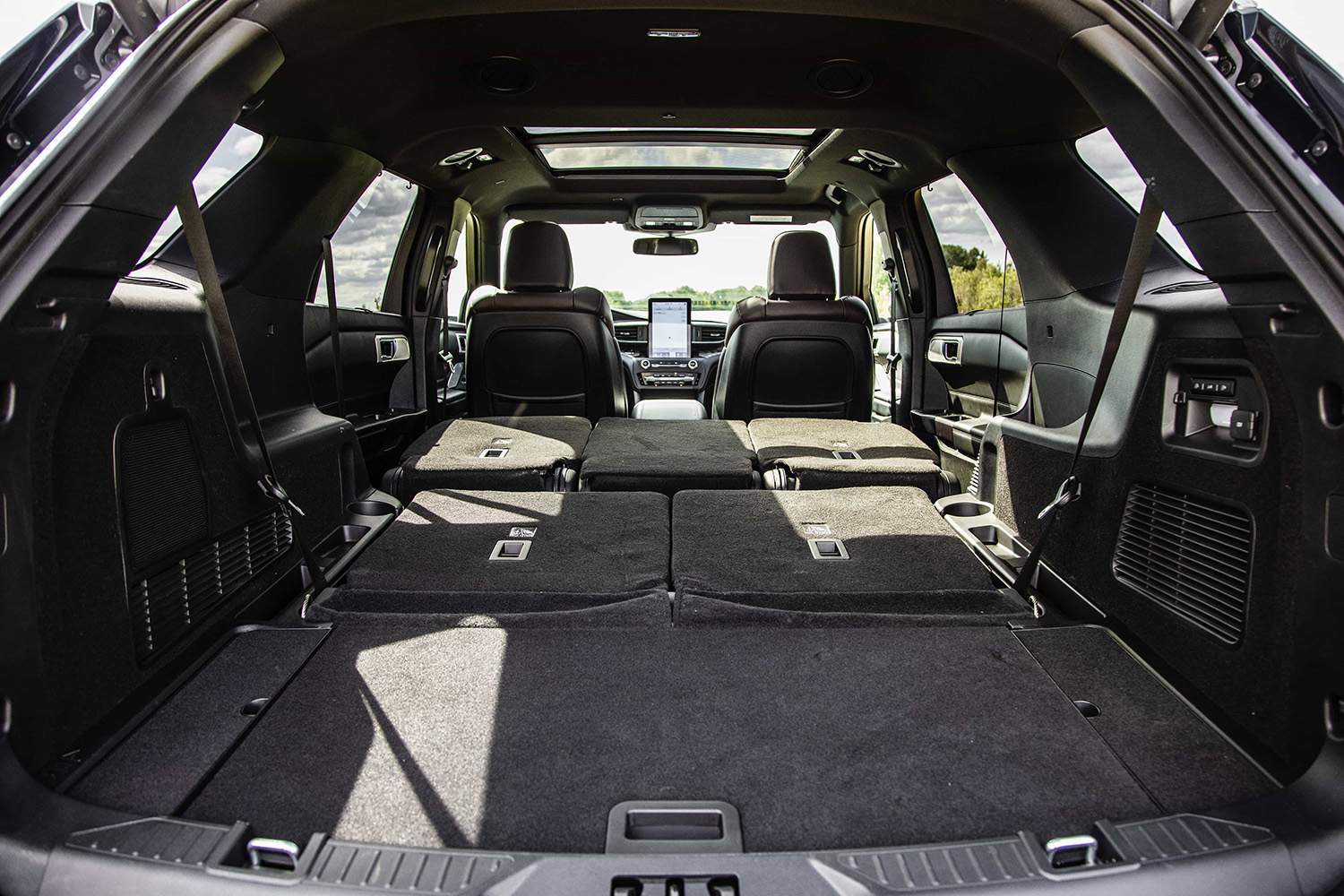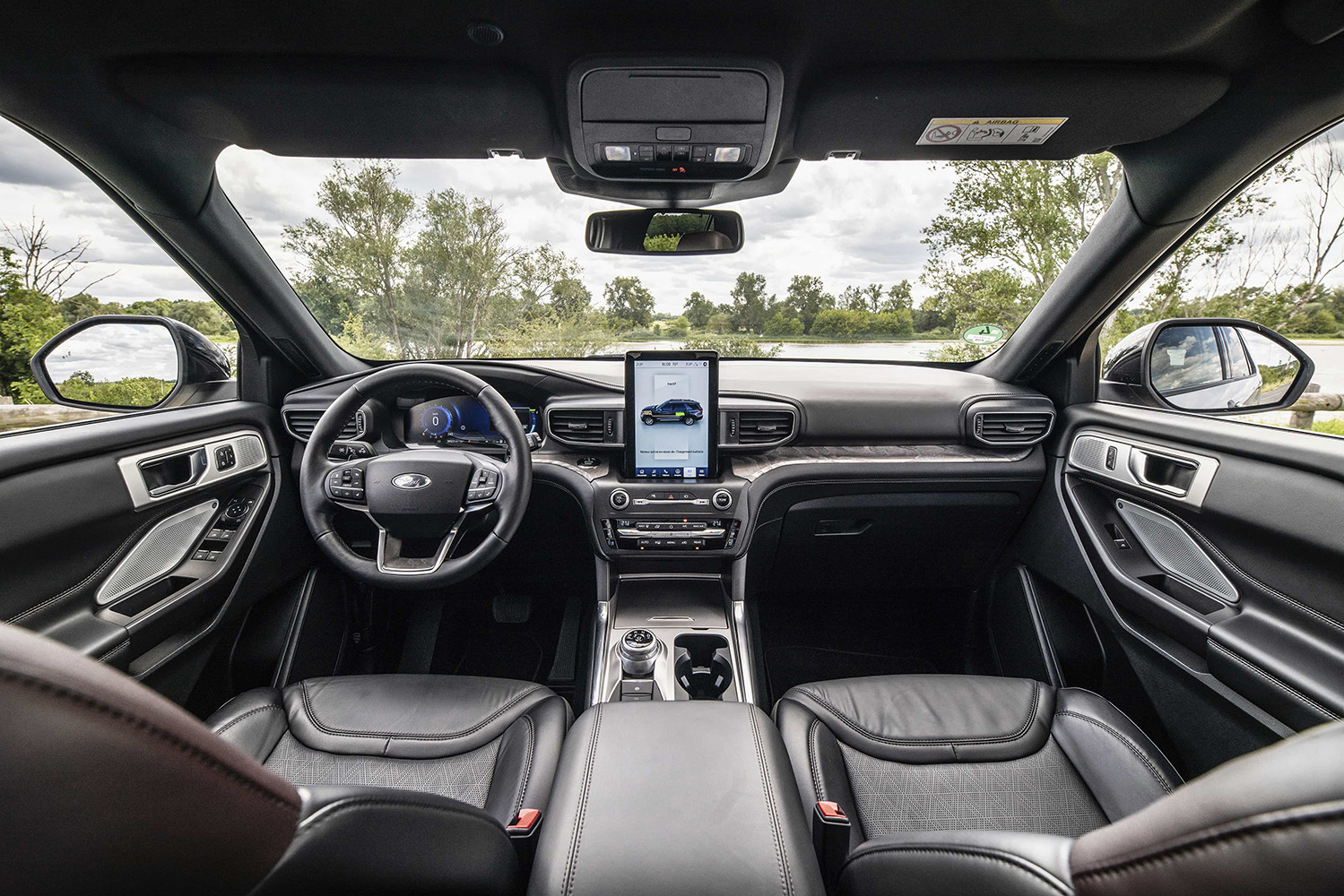 A bordo dell’Explorer, forte dei 506 centimetri di lunghezza e dei 228 centimetri di larghezza specchietti inclusi, lo spazio abbonda: oltre ai sette posti (i due sedili in fondo si abbattono e risalgono elettricamente), tutti siedono come in un salotto e anche al centro del divano si sta comodi perché il sedile è singolo e il tunnel poco ingombrante. Il posto guida ha regolazioni di tutti i tipi: il sedile è riscaldabile e refrigerabile. Al centro della plancia si trova un tablet: posizionato in verticale, ha uno schermo da 10,1 pollici, per la verità non velocissimo in fatto di reazione ai comandi. Svuotiamo le tasche da chiavi, portafoglio e documenti vari e tutto trova posto: il bracciolo centrale cela un vano enorme.