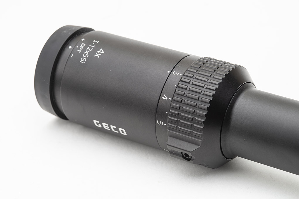 Già, il reticolo. Quello adottato dal Geco-3-12x56i è il classico German 4, perfetto per tutti gli impieghi venatori. Il punto centrale può essere appunto illuminato e, in questo caso, l’intensità è regolabile mediante la torretta di sinistra, la cui rotazione permette di selezionarne la luminosità ideale senza soluzione di continuità. All’interno della torretta sono contenuti i circuiti elettronici e la batteria, un comune accumulatore a bottone tipo CR 2032; dopo tre ore di inutilizzo si spenge automaticamente mentre quando l’autonomia raggiunge il 15% una serie di lampeggi all’accensione indicano che è giunto il momento di provvedere alla sua sostituzione.
