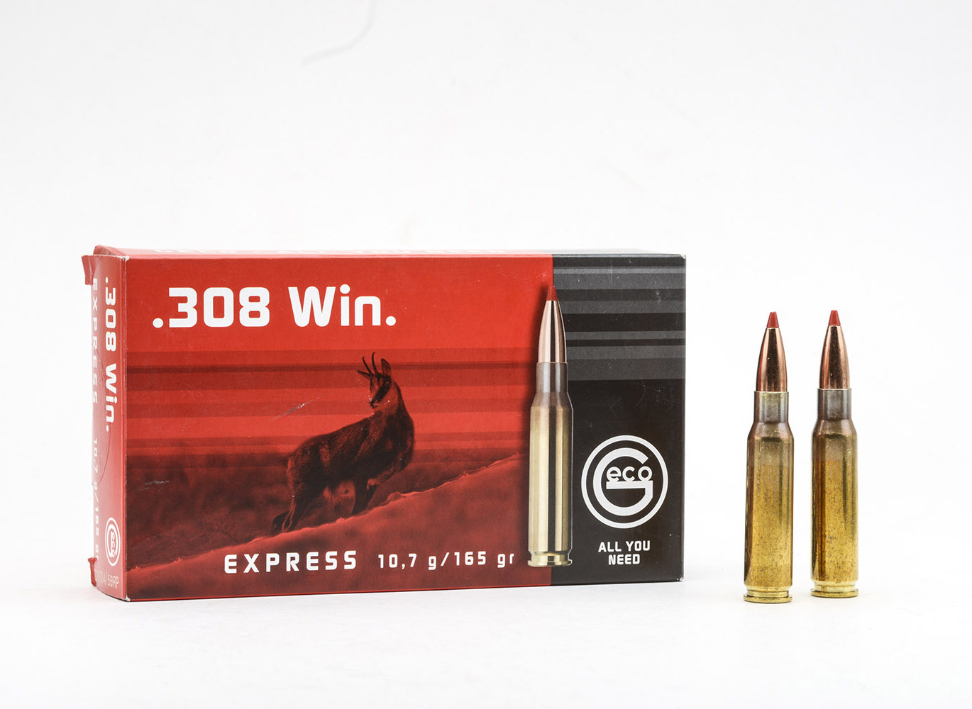 Caratteristica della cartuccia è l’ogiva Geco Express, un proiettile tradizionale con nucleo in piombo e camiciatura in rame (Geco Special Jacket) di spessore differenziato, più sottile in punta per facilitare il fenomeno espansivo, meno in coda per garantire un’adeguata ritenzione della massa. Un tip in polimero (Geco Express Tip) di colore rosso – a sua volta fornito di foro apicale – copre il foro iniziatore del fenomeno espansivo ottimizzando il coefficiente balistico; la tecnologia Geco BC-Shape offre una ridotta resistenza aerodinamica così da offrire una traiettoria molto radente e garantire una gittata elevata.
