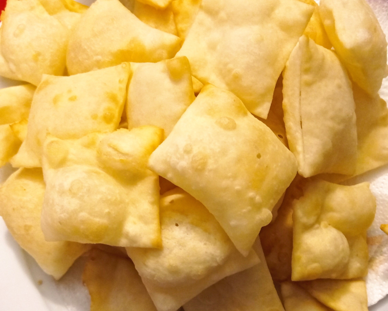 Si passa poi allo gnocco fritto, senza strutto. Prendete una ciotola e, dopo averla setacciata, versateci la farina; sciogliete il lievito nell’acqua tiepida insieme a un pizzico di zucchero, mescolate e inserite il composto nella ciotola. Lasciate riposare per qualche minuto, poi iniziate a mescolare il tutto; aggiungete il sale e continuate a lavorare l’impasto, cui in ultimo aggiungere l’olio. Quando l’impasto risulterà liscio, lasciatelo riposare per venti minuti. Trascorso questo tempo, stendetelo per circa mezzo centimetro e tagliatelo con una rotella a quadrotti; friggete in olio abbondate fino a ottenere la doratura da ambo le parti.