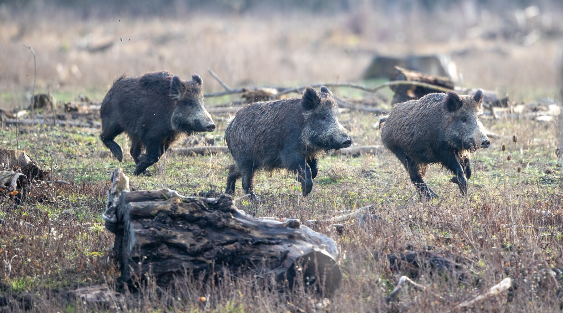 Gestione della fauna selvatica: tre cinghiali giovani nel bosco