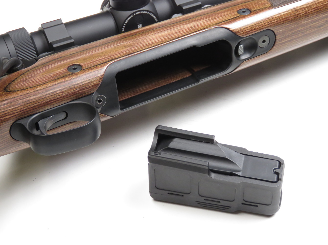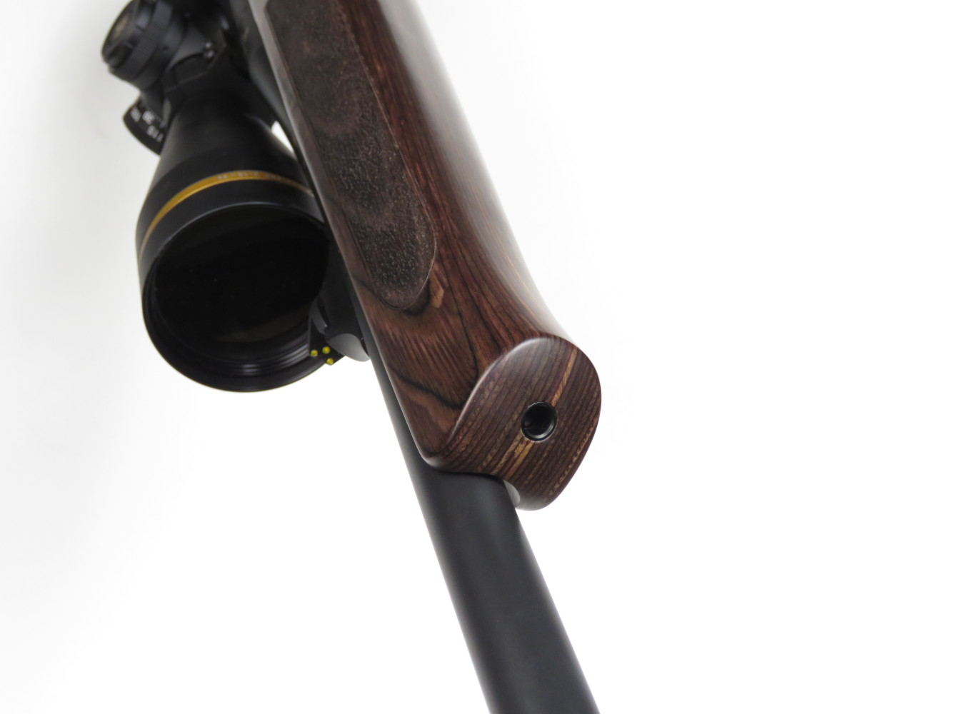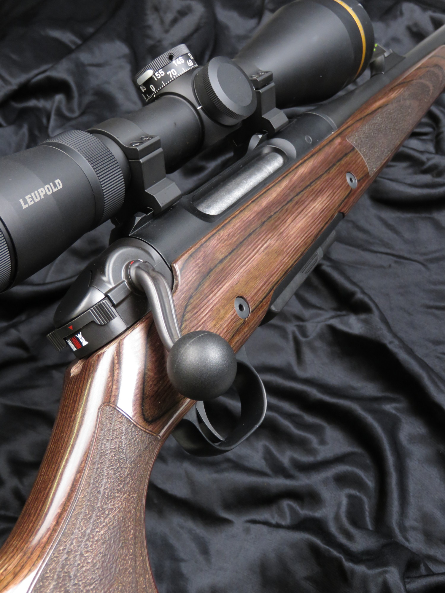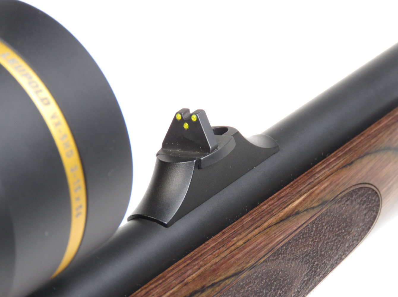 L’attacco per l’ottica è costituito da due spezzoni di Picatinny integrali all’azione, sui quali è possibile montare un’ampia varietà di cannocchiali. Per la prova ho utilizzato un Leupold Vx5 Hd 3-15×56, luminoso e molto proporzionato rispetto all’arma.