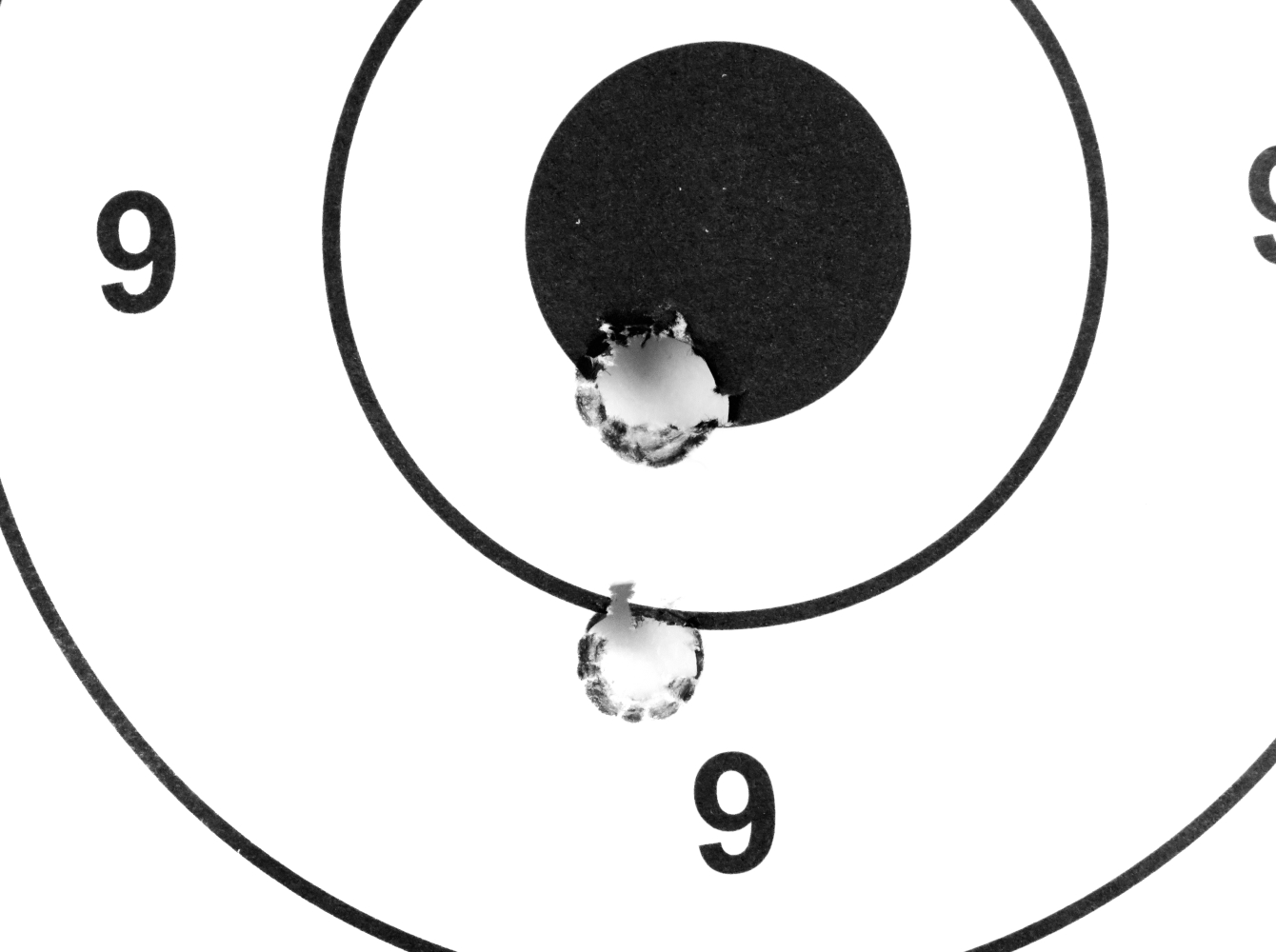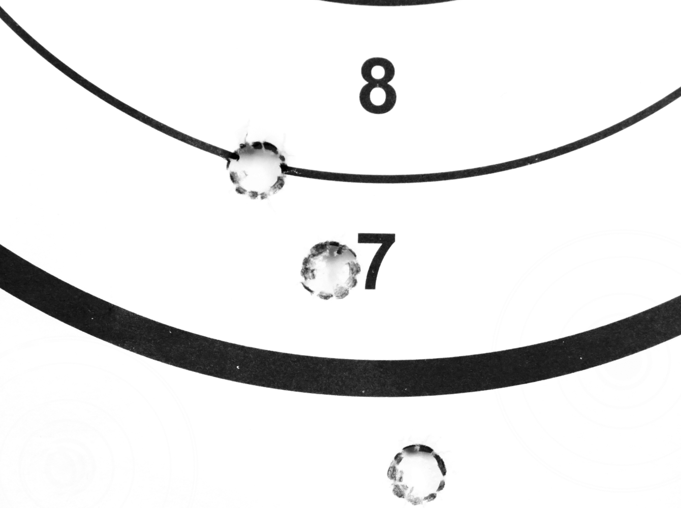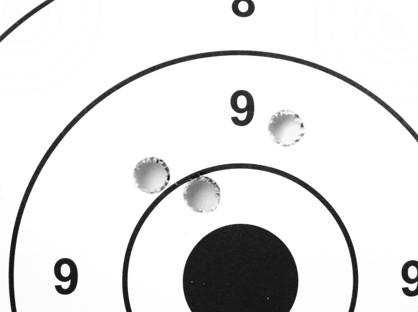 Sono quindi passato ai caricamenti convenzionali con nucleo in piombo: le Norma Bond strike di 180 grani non sembrano essere state gradite al meglio dalla canna Haenel, con un raggruppamento di tre colpi in 37 millimetri. Del tutto sbalorditivo invece il risultato ottenuto con le Remington Core lokt di 150 grani, tre colpi in soli 10 millimetri da centro a centro con i fori reciprocamente tangenti; stesso diametro di rosata con le Geco Soft point di 170 grani, con i primi due colpi esattamente sovrapposti l’uno all’altro e il terzo appena sotto.