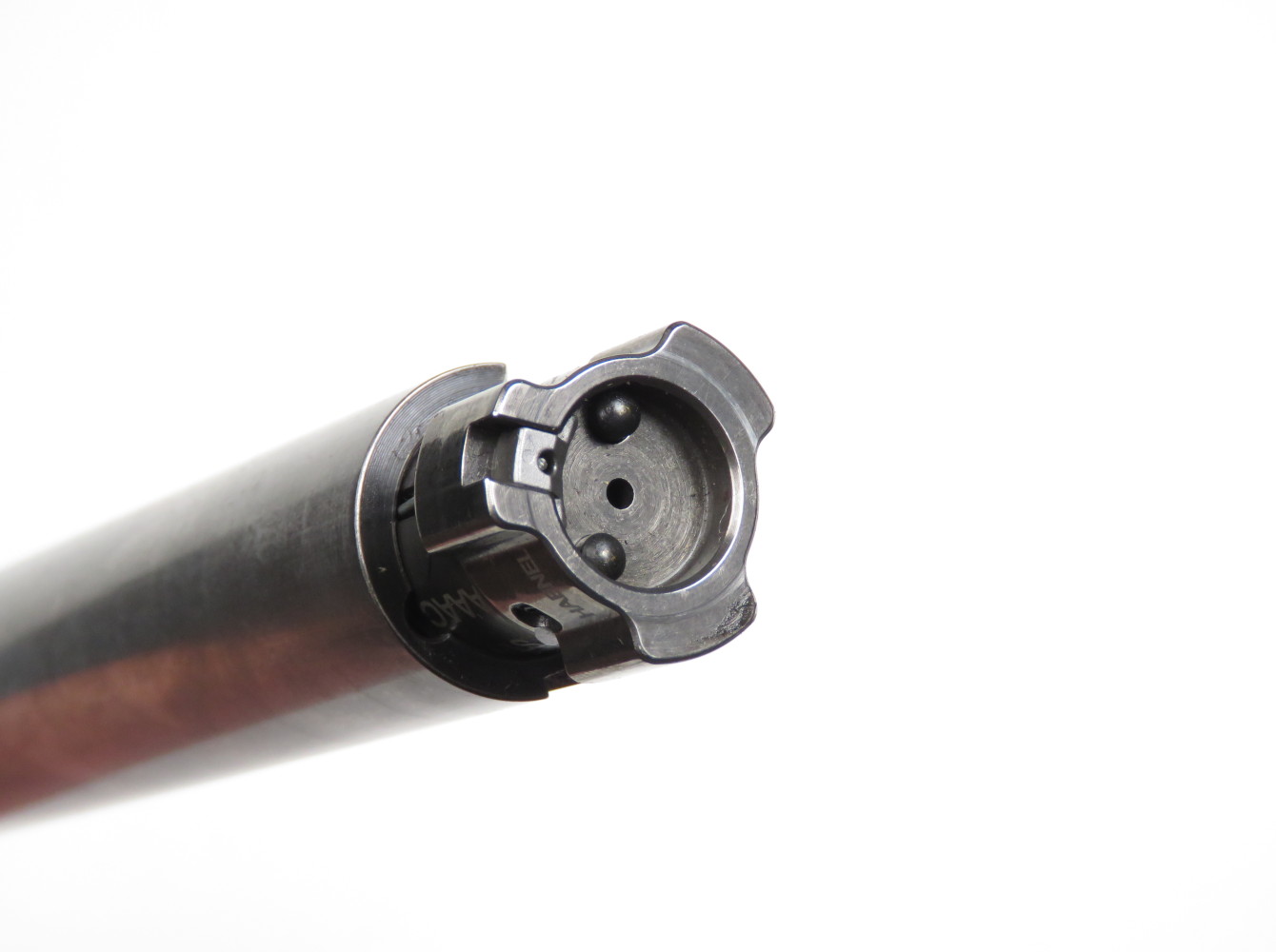 L’otturatore è un cilindro con una testina rotante a tre tenoni (120°), che si innestano direttamente nel prolungamento di culatta della canna. L’estrattore è a ghigliottina, integrata in uno dei tenoni; doppio l’espulsore a pistoncino caricato a molla.