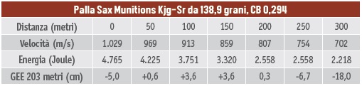 I calibri per la caccia al cervo: 8,5×63 con palla Sax Munitions Kjg-Sr da 138,9 grani, CB 0,294