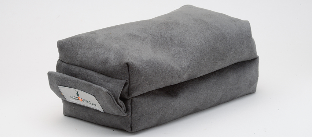Dei numerosissimi colori disponibili, è stato scelto un grigio neutro. Un colore che ricorda una delle varianti cromatiche del loden. Il sacchetto di Jagdpunkt è composto da due metà simmetriche unite da due bottoni a pressione e, sull’altro lato, da altrettante strisce di Velcro che consentono di utilizzarlo in una molteplicità di modi differenti. Questa modularità permette, per esempio, di sparare in appoggio anteriore-posteriore, di variare l’altezza dell’appoggio oppure di piazzarvi il lungo in maniera stabile. L’unico limite è la fantasia del cacciatore.