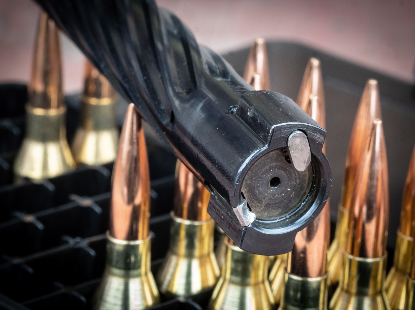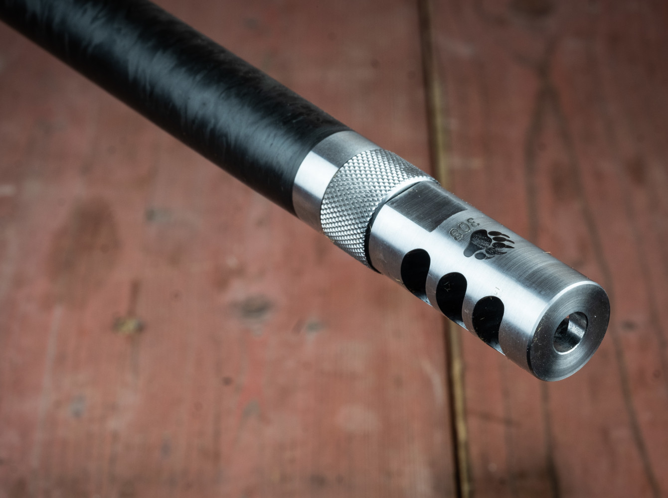 Come già sulla carabina Nyx, anche sulla Nanook Kelbly ha utilizzato questo sistema che consente anche di variare il serraggio: si può, dunque, avvitare fino a fine corsa così come fermarsi prima, adeguando questo elemento alle prestazioni della ricarica, visto che il freno più o meno avvitato può avere un’influenza sulle prestazioni balistiche. Il passo di rigatura è 1:9”, necessario per stabilizzare palle che nei calibri .30 (Norma magnum e Prc) superano abbondantemente i 200 grani.