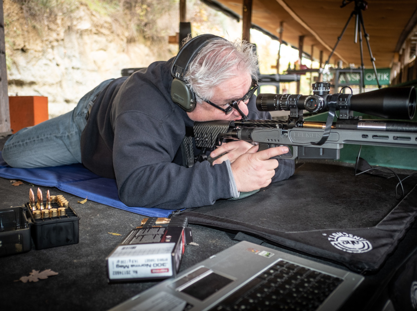 Dopo pochi colpi necessari per la taratura a 600 yard, abbiamo lasciato raffreddare per qualche istante la canna, prima di passare al test a fuoco. A nostra disposizione, una cartuccia commerciale e una ricarica messa a punto da Nicola Salvador, che con la famiglia gestisce l’armeria Regina di Conegliano (Tv), distributore europeo delle carabine Kelbly. Anche qui purtroppo abbiamo dovuto fare i conti con la drammatica carenza di munizioni cariche e di componenti per la ricarica: la commerciale a disposizione era la Norma con palla Berger Hybrid target di 230 grani, stessa palla utilizzata anche per assemblare la ricarica, per la quale però è stato utilizzato un propellente differente.