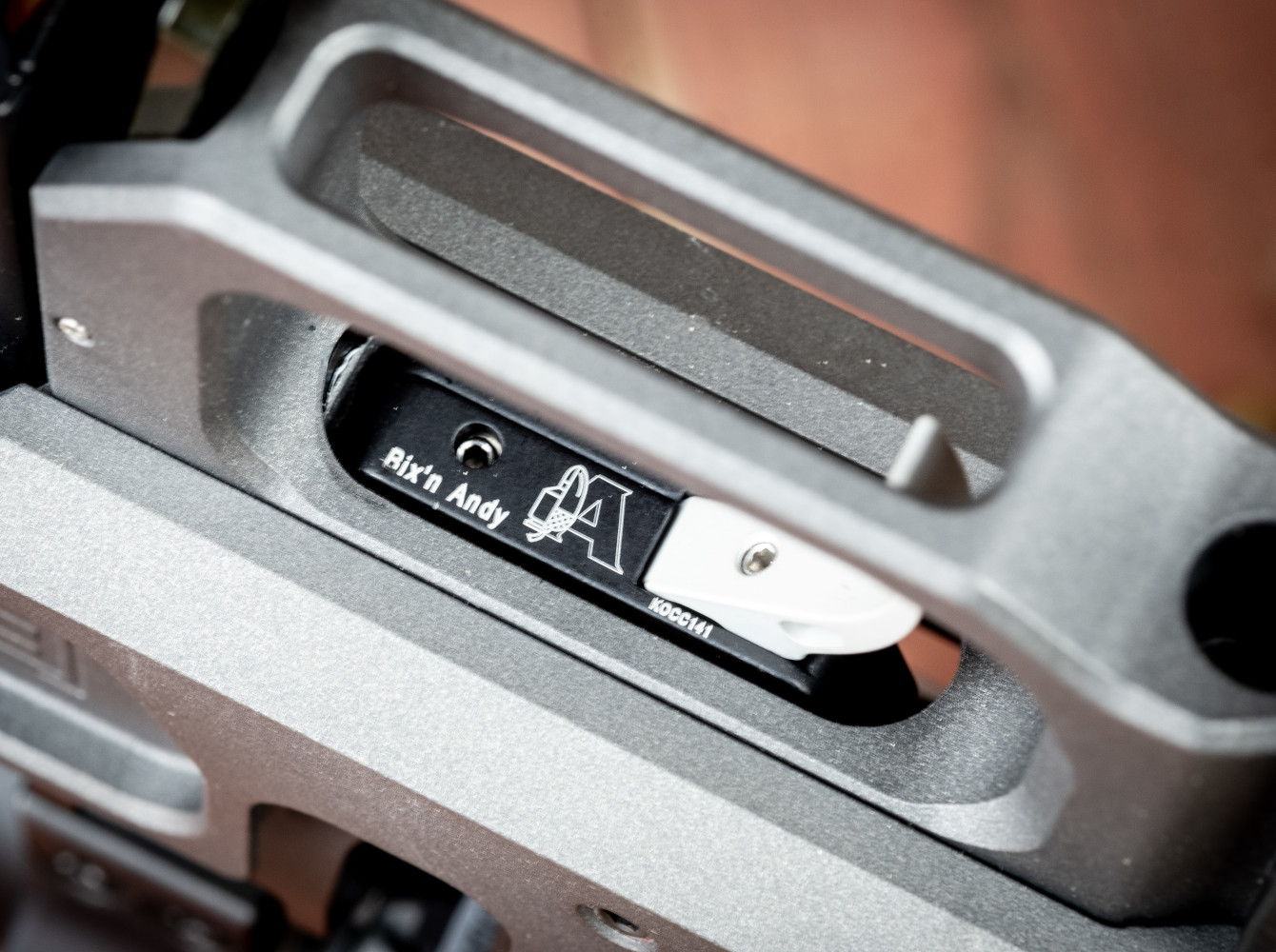 Discorso a parte merita la calciatura: si tratta, in verità, di uno chassis prodotto dalla specialista statunitense del Colorado Xlr industries. Kelbly ha scelto il modello Element 4.0 Magnesium Tungsten gray. È realizzato a macchina con magnesio Az61A; in abbinamento con calcio e impugnatura in carbonio arriva a pesare circa 795 grammi, dato che Kelbly considera un primato mondiale, come unico chassis in grado di scendere sotto le due libbre (900 grammi, circa).