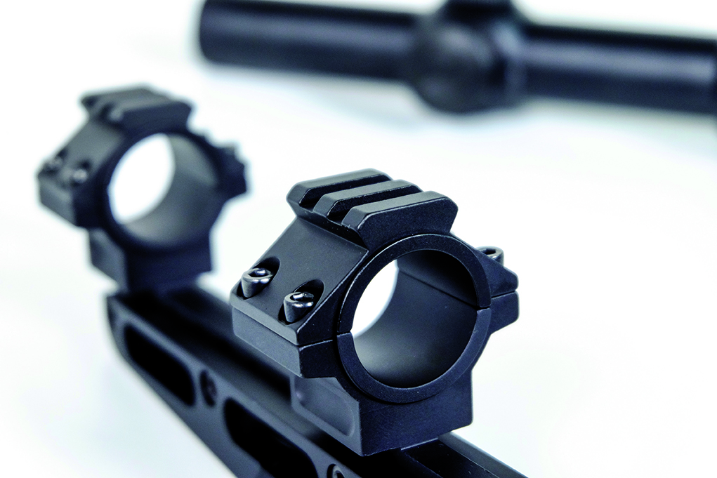 Applicabile all’onnipresente supporto Weaver / Picatinny, dispone di anelli da 30 millimetri distanziati di 80 millimetri che, con i corretti riduttori in alluminio (forniti in dotazione), ospitano anche i tubi da un pollice, più frequenti sul mercato statunitense che su quello nazionale. Sua caratteristica è la possibilità di regolazione sul piano verticale (7 millimetri rispetto all’altezza minima) e longitudinale; in questo caso, la presenza di appositi recessi permette di muovere l’ottica in un range di 40 millimetri a passi di 10 millimetri. Garantendo quel “tiro” che a volte è necessario quando si utilizzino armi particolari.
