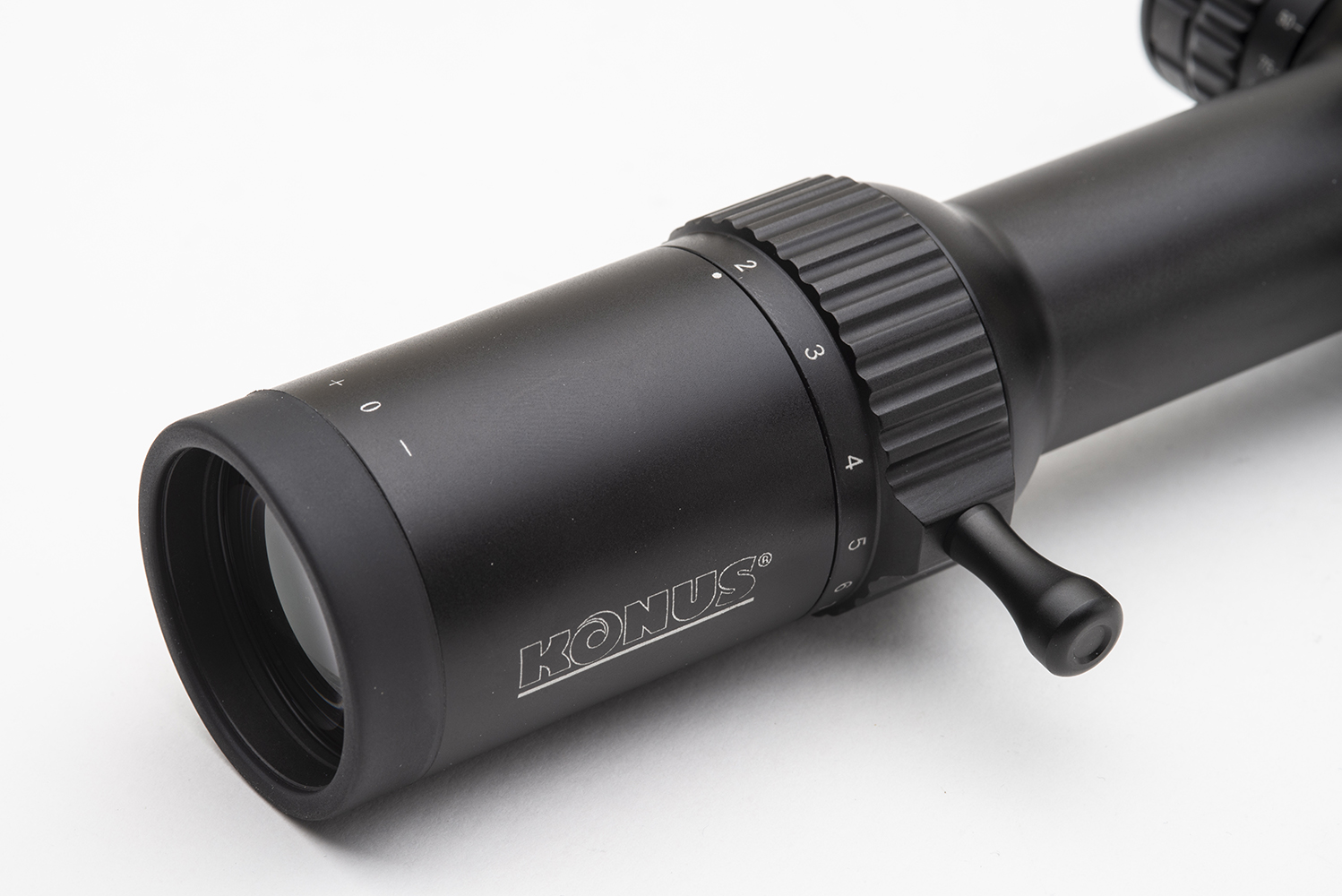 Per ottenere questo concentrato di tecnologia, Konus fa realizzare il cannocchiale nella Repubblica popolare cinese, come è correttamente indicato nella parte inferiore dello chassis dove sono ospitate la meccanica di regolazione del reticolo e le tre torrette. Come spesso avviene nelle ottiche provenienti dall’Estremo Oriente, e in particolare dalla Cina, la qualità delle lavorazioni meccaniche non lascia a desiderare e la finitura superficiale del tubo – classica ossidazione su alluminio – è molto ben eseguita. Il tubo ha il diametro standard europeo di 30 mm. Di qualità più che adeguata alla classe sono anche le lenti multi-trattate, capaci di una resa cromatica veramente realistica.