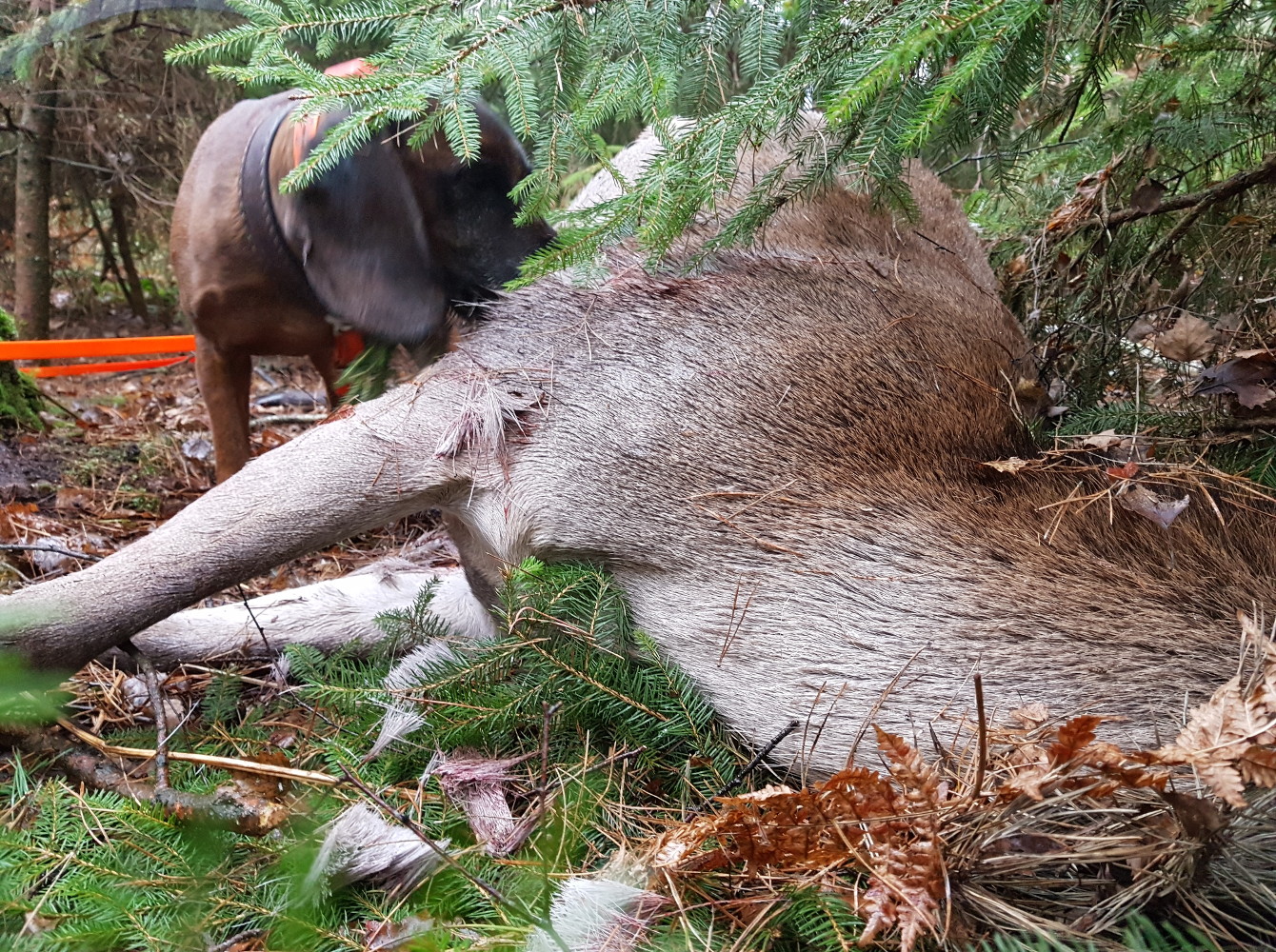 I cani da traccia lavorano su una traccia di sangue. Lo pensano in molti. Ma non è proprio così. L’istinto li induce a seguire un animale ferito, e questo desiderio dovrebbe essere rafforzato e consolidato. Le gocce di sangue a terra sono una doppia prova: l’animale è stato davvero ferito, la strada è giusta. Ma la loro assenza non vuol dire niente: né sulla strada, né sul ferimento.