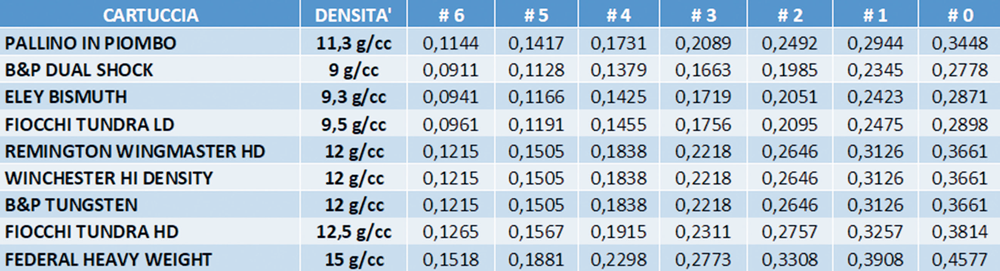 di oncia, pari a 35 grammi, di pallini ad alta densità lanciati a 1300 feet per second