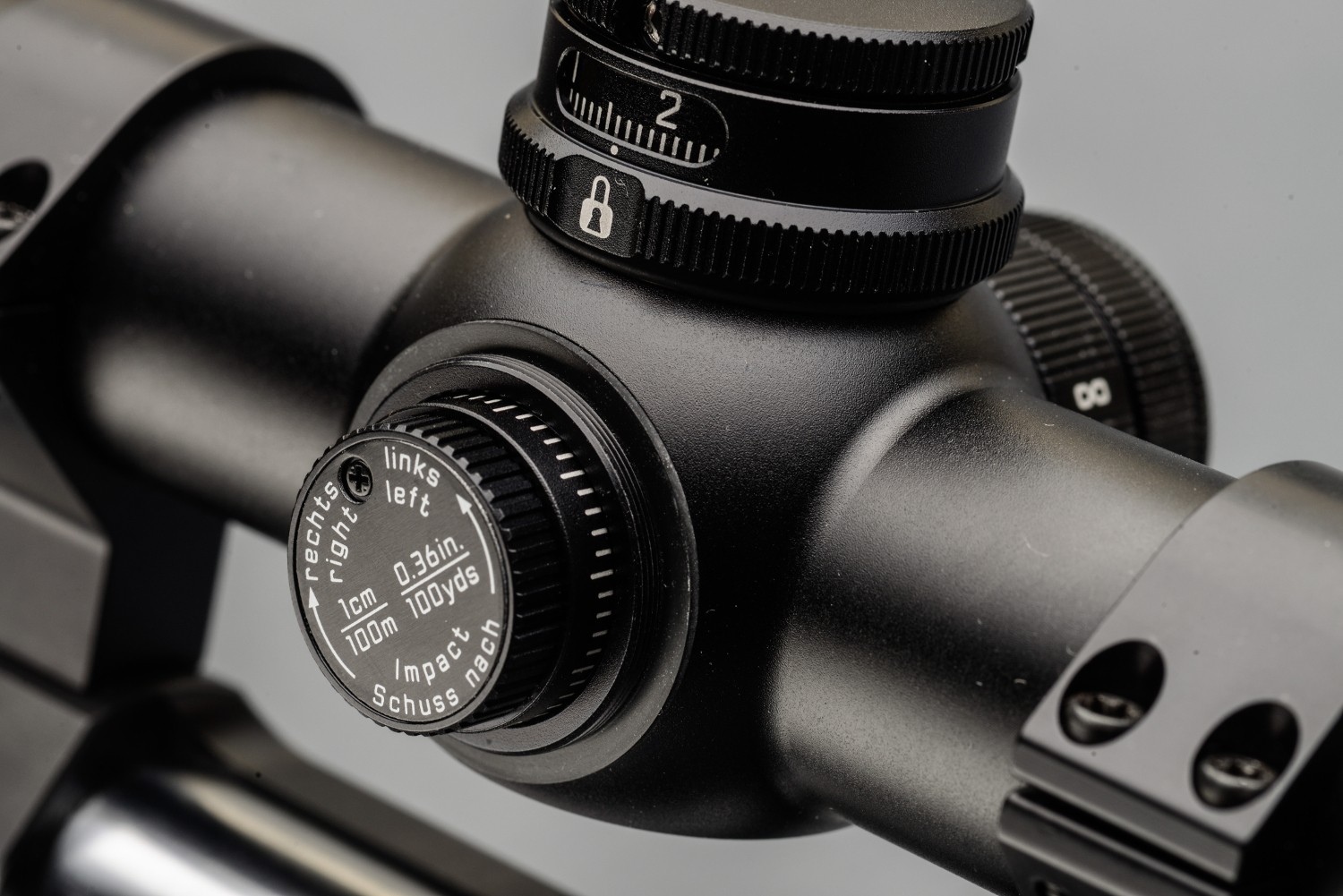 Una ghiera coassiale alla torretta funge poi da sistema di bloccaggio dell’insieme. La torretta balistica esprime il meglio di sé se abbinata alla ghiera Direct dial. Acquistabile a parte, indica direttamente la distanza di tiro sulla base di 12 curve balistiche standard che simulano in maniera sufficientemente esatta le prestazioni dei vari gruppi di calibri e munizioni.