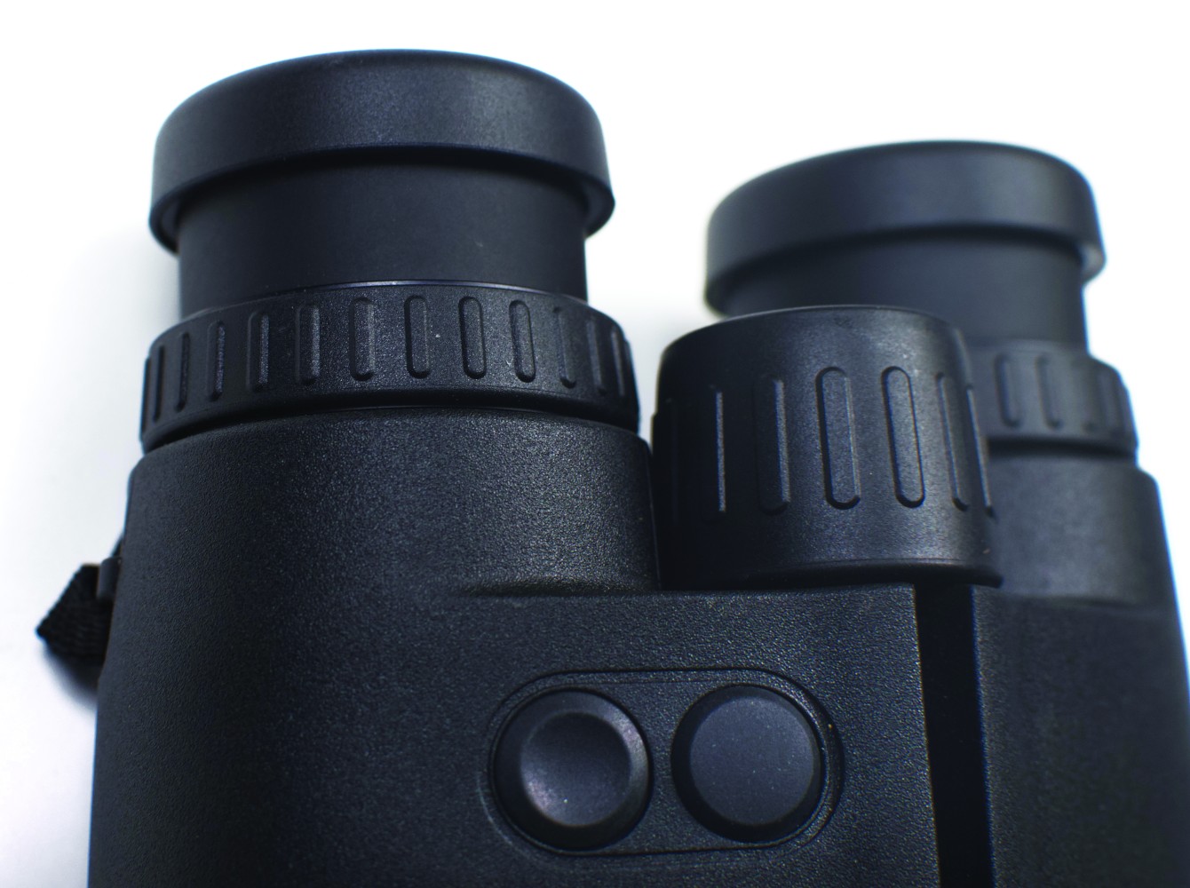 In corrispondenza dei due oculari invece ci sono le ghiere per la regolazione diottrica, da -3,5 a +3,5 diottrie, per mettere a fuoco alla perfezione il display interno. Le conchiglie degli oculari sono regolabili su otto posizioni con una semplice rotazione, con un’escursione totale di 12 millimetri. Nella parte inferiore del binotelemetro sono presenti i due incavi per i pollici, che garantiscono una presa ancora più salda.