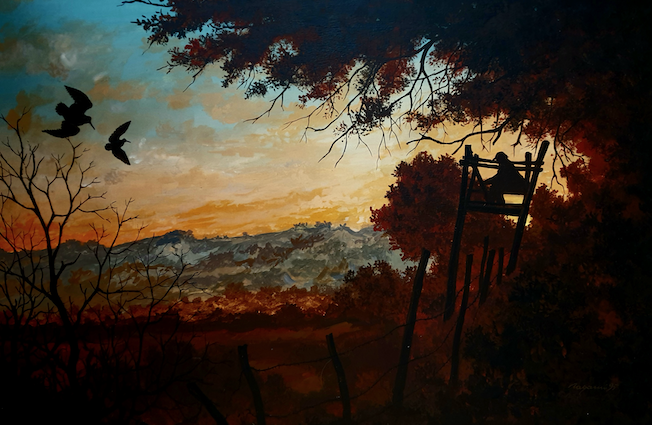 «Le mie opere pittoriche sono dipinte su tavola con colori acrilici. Di alcuni quadri ho scelto di realizzare anche stampe numerate che, come i quadri, sono di dimensioni variabili. Anche la mia produzione pittorica si ispira alla realtà. Ritraggo ciò che ho visto, quello che mi ha colpito. Come l’immagine del cacciatore di ungulati in attesa in altana a cui passa davanti, al crepuscolo, una coppia di beccacce. O come la beccaccia a terra su un tappeto di foglie. Ho colto l’attimo con la mia macchina fotografica. Ero fuori con il cane e improvvisamente il setter fermò. Un attimo dopo la regina fece capolino da dietro l’albero. Meravigliosa. L’ho catturata con l’obiettivo della mia reflex fermando per sempre il ricordo di quell’emozione. Perché quando si ritrae la natura, niente è più bello di ciò che è vero».