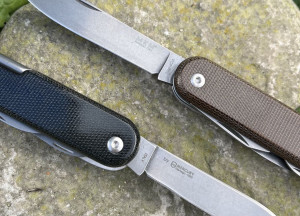 Si chiamano Malga 5, Malga 6 e Campo 7: in tutti il numero indica il numero degli utensili inseriti nel coltellino (rimandiamo alla scheda tecnica per l’elenco). E, sempre in tutti, la lama è lunga 67 mm, spessa 2,5 mm ed è realizzata in MagnaCut con una durezza di ben 61-63 Hrc e una finitura stonewashed molto gradevole; non c’è blocco (si tratta di slipjoint) e l’apertura sfrutta un’unghiatura presente sul lato sinistro.