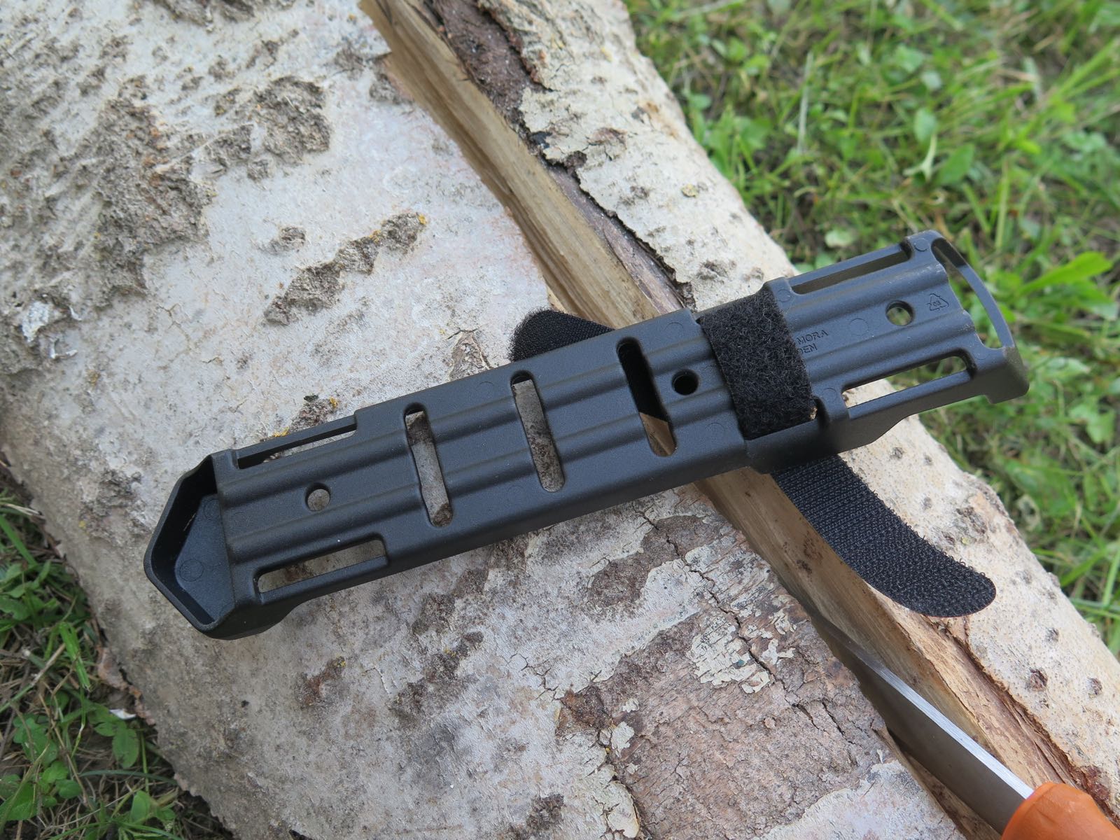 Questa benvenuta innovazione consiste in un supporto plastico aggiuntivo, che aggiunge appena 20 grammi, ed è semplicemente geniale: sfruttando le varie fessure, i fori, e le fettucce velcrate in dotazione, è possibile fissarlo praticamente ovunque, dallo zaino con sistema MO.L.L.E. alla portiera di un fuoristrada, alla parete di un capanno.