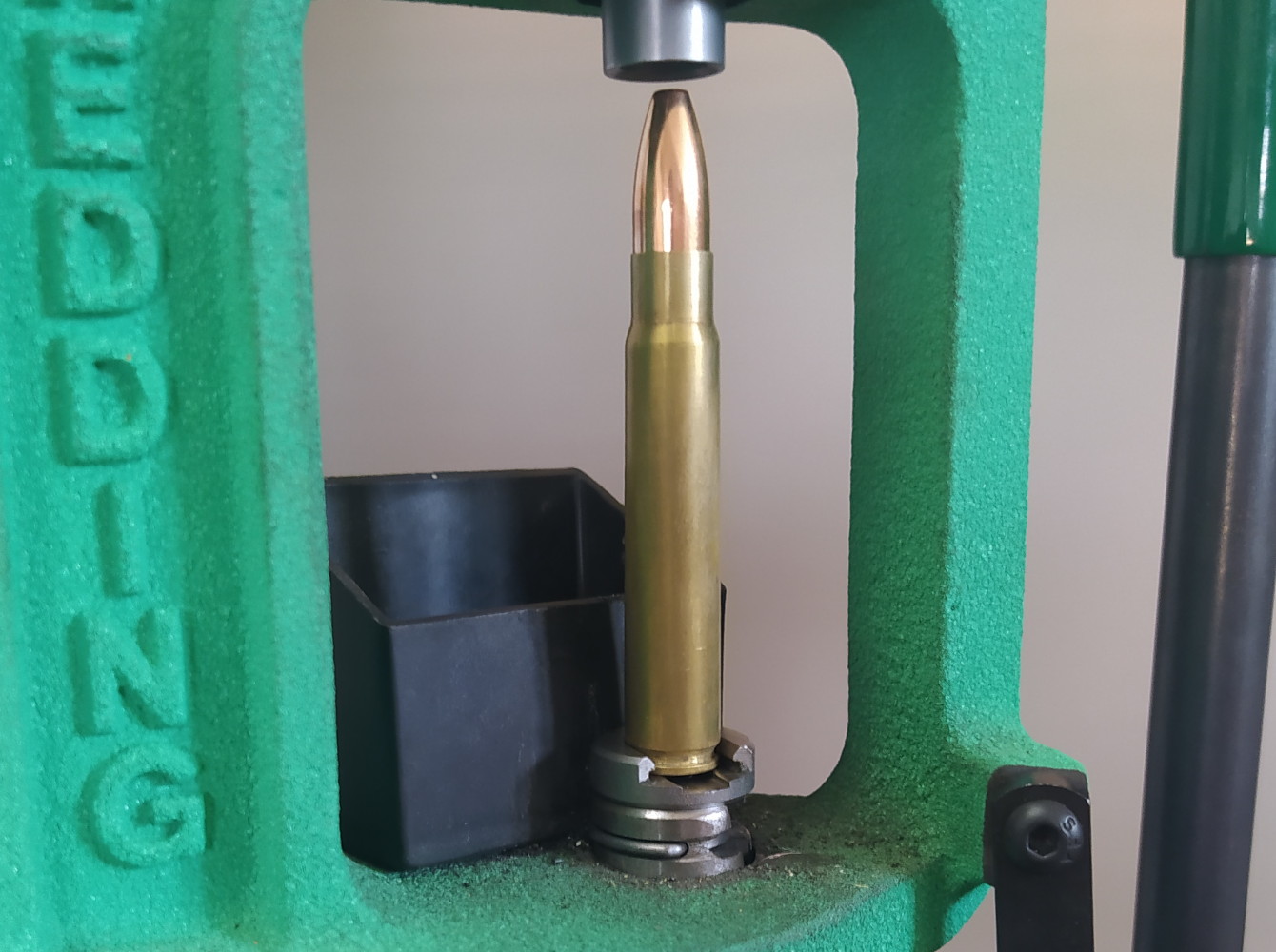 Il dosaggio prescelto di 57,5 grani sembra offrire tutte le garanzie di sicurezza, validate anche dalla successiva analisi della capsula d’innesco, che non presenta nessun indice di sovrappressione. Analogo discorso vale per i bossoli di risulta che non hanno lasciato riscontrare nessuna anomalia. L’assemblaggio finale della palla sul bossolo è stato assicurato dal Bullet seating die della Hornady installata sulla pressa a singola stazione Redding. La lunghezza complessiva ferma il calibro a 80,00 millimetri esatti.