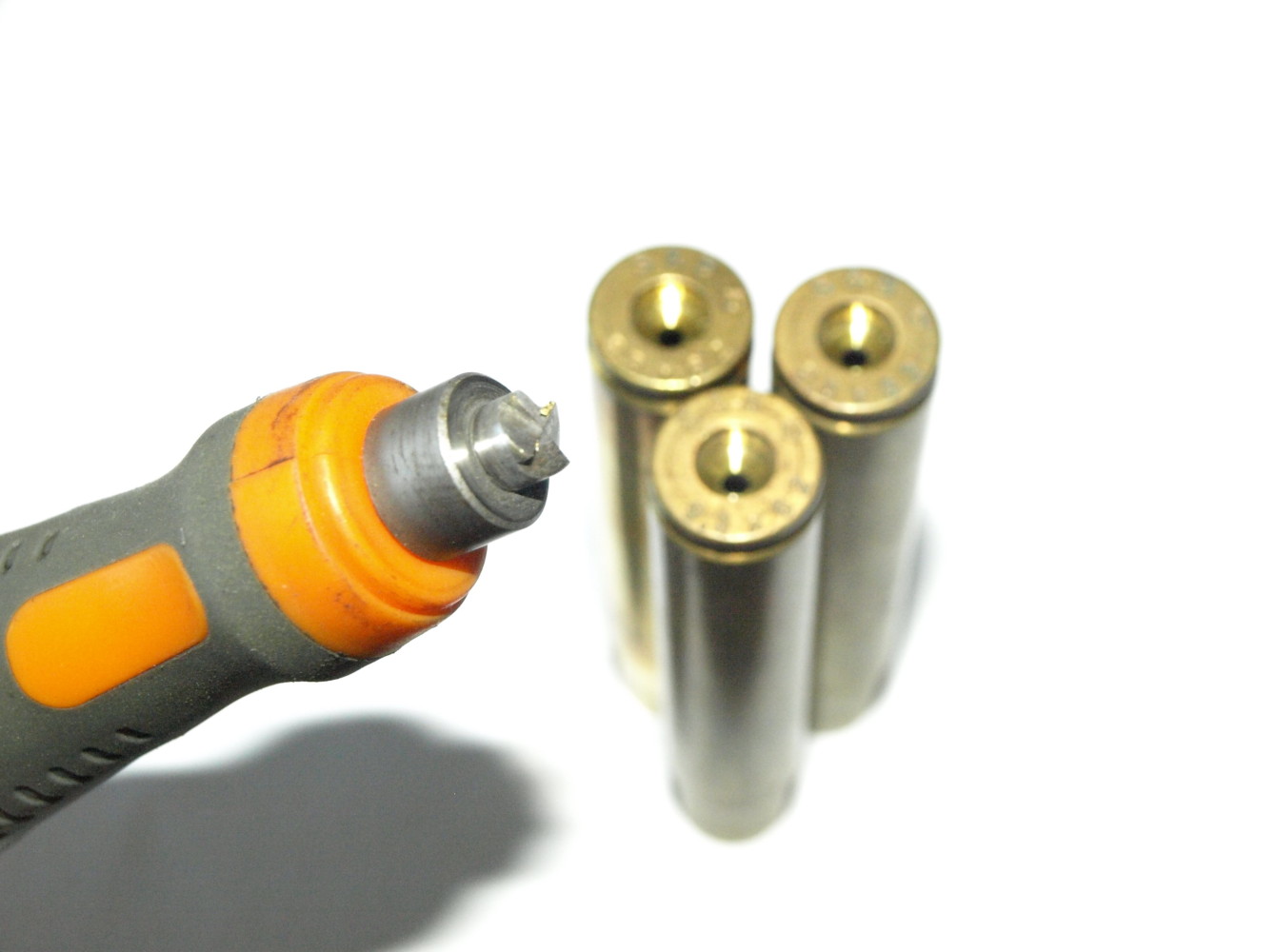 Nello specifico si tratta di bossoli di primo sparo; pertanto prima di procedere con le operazioni di ricarica vere e proprie è stato necessario sottoporli alle lavorazioni preliminari di ripristino. Dopo la ricalibratura totale del corpo (con matrice Hornady full length sizing die) si è proceduto al taglio (trim) del materiale eccedente alla sommità dei colletti, per portare il bossolo alla misura di 61,80 millimetri. L’operazione successiva è stata la rettifica della sede d’innesco. Sui bossoli Sellier & Bellot questo intervento è necessario per un corretto alloggiamento quando si decida d’utilizzare prodotti concorrenti. Gli inneschi a marchio Sellier & Bellot originariamente installati sui bossoli di primo sparo presentano infatti un corpo appena più basso rispetto alla media.