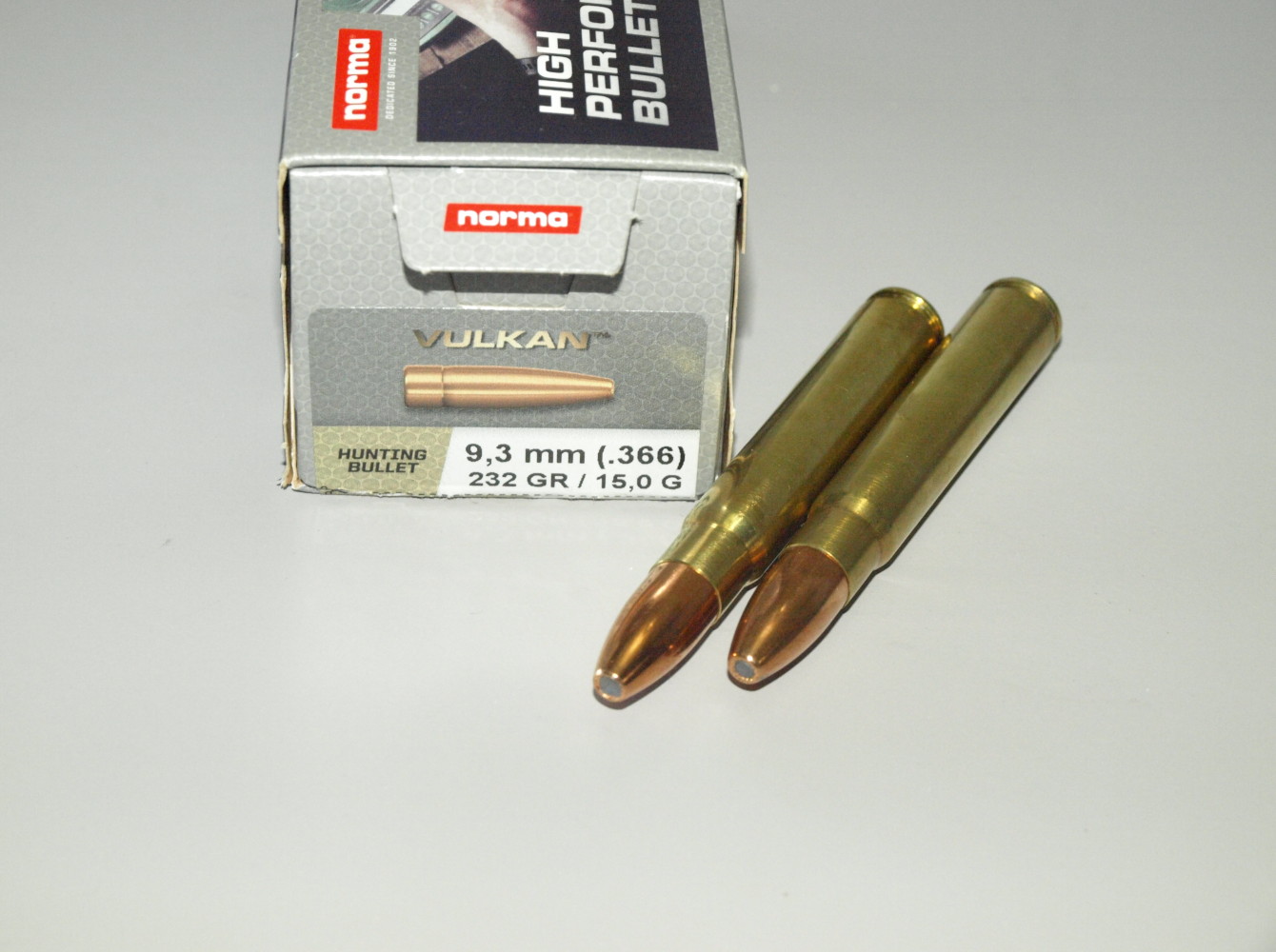 La Vulkan della Norma dal peso di 232 grani è un proiettile con massa tendente al minimo rispetto alle caratteristiche della cartuccia di destinazione. Le palle da caccia previste per il 9,3×62 Mauser hanno infatti un peso che parte da un minimo di circa 220 grani e arriva alla soglia dei 320 grani.