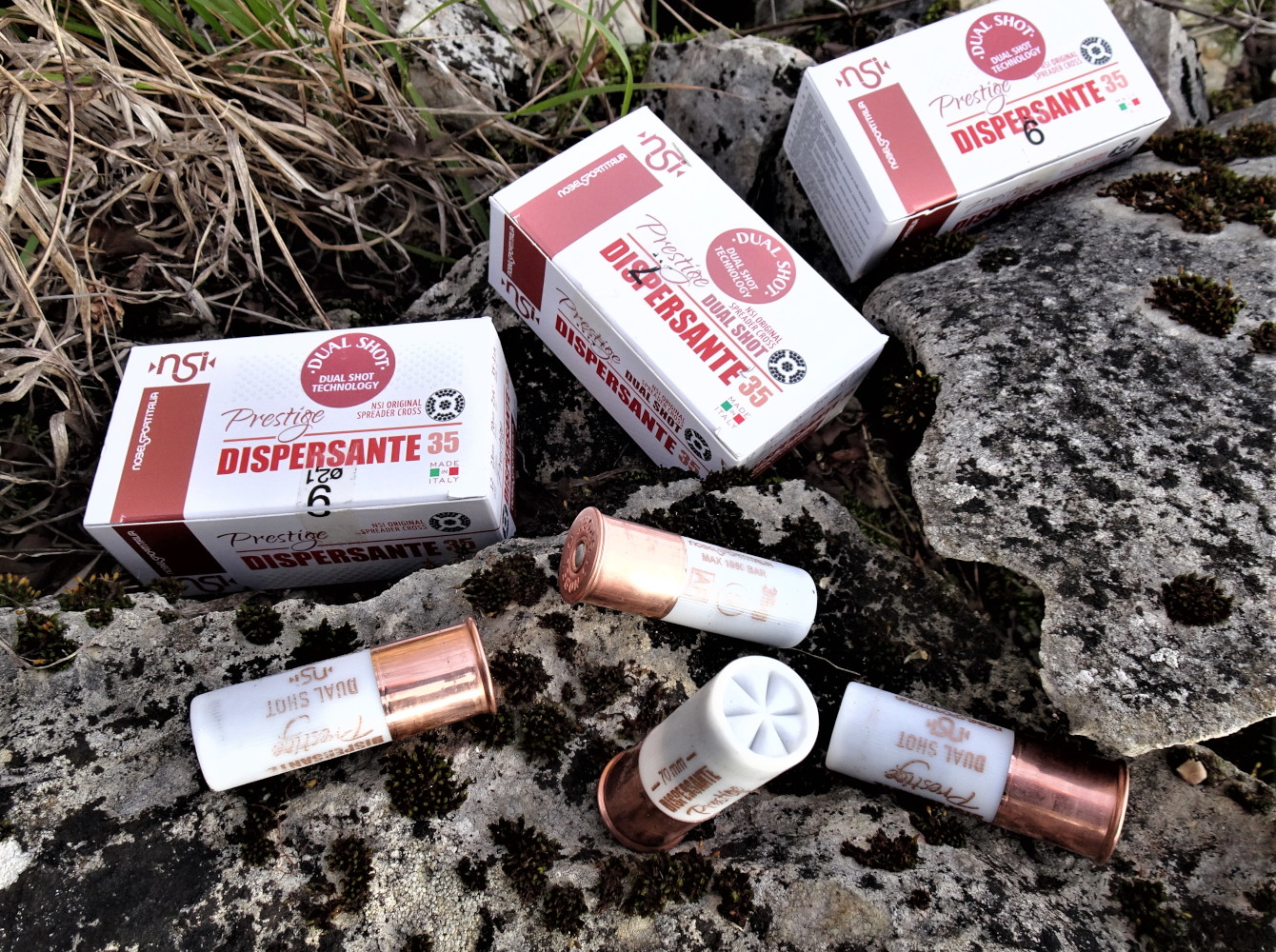 Sono riuscito a portare a caccia la cartuccia Prestige Dispersante 35 dual shot, che Nobel sport Italia ha aggiunto alle altre tre della gamma (Extra 37, Heavy 43 nel bossolo di 70 millimetri, Fast magnum da 51 grammi nel bossolo di 76 millimetri; questa serie di cartucce si distingue per l’estetica intrigante, ma anche per la componentistica di elevata qualità). La scatola da dieci, a bauletto, si caratterizza per un colore bianco, con una fascia color rame.