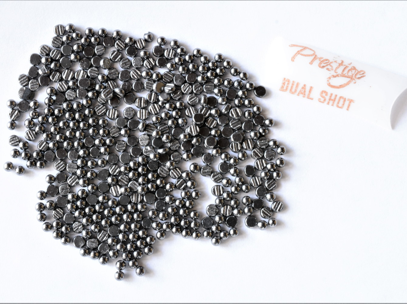 Che cosa facevano i nostri nonni quando volevano disperdere il piombo e non disponevano di tutta la componistica moderna? Lo schiacciavano. Lo facevano a martello, in modo artigianale, ma riuscivano nell’intento. Nsi ha ripercorso strade dettate dall’antica saggezza, unendole al ragionamento balistico: mezza dose di pallini standard al 2% di antimonio, sferici nella numerazione desiderata (7 o 9; 2,5 o 2,1 millimetri di diametro) e mezza dose di pallini della stessa numerazione, ma schiacciati con procedimento industriale. Molto belli all’esame visivo, anche perché perfettamente regolari.