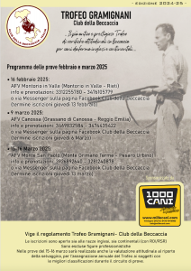 Il nuovo regolamento del Trofeo Gramignani è pubblicato in versione integrale sulla pagina Facebook del Club della Beccaccia. Per comodità di chi consulta Cacciamagazine.it ne riportiamo una sintesi insieme alle date delle prossime tappe in programma.