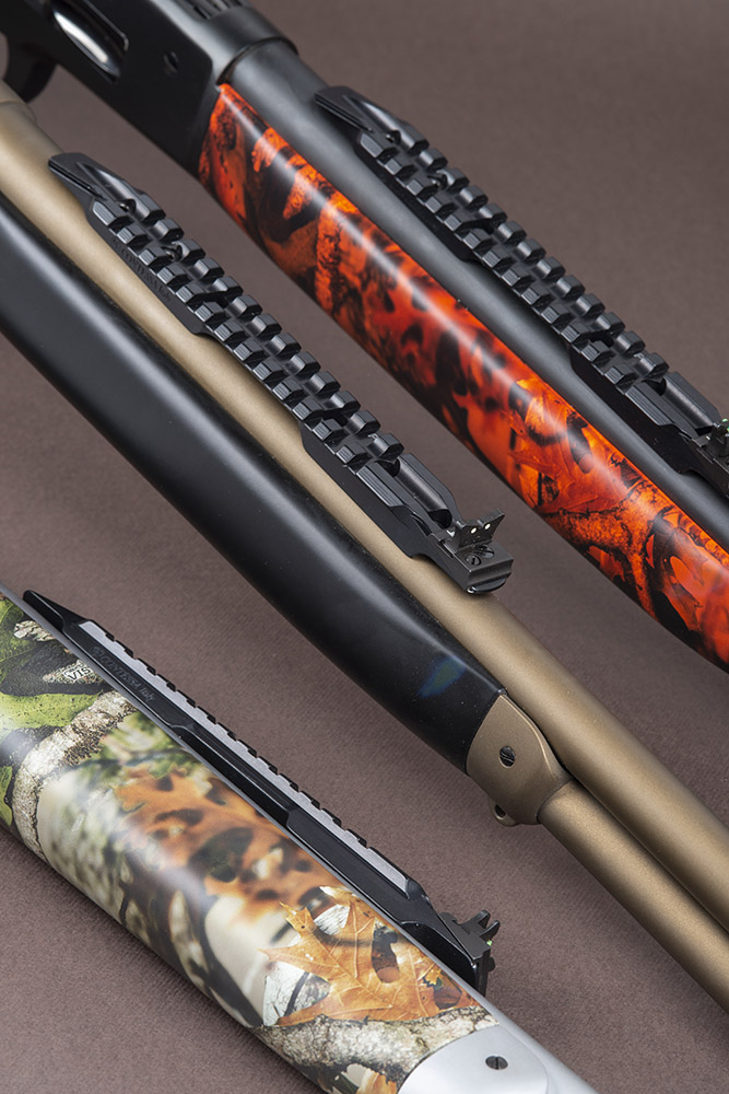La finitura Silicon grip è presente anche sulle altre tre versioni della gamma Boarbuster, a cominciare dall’allestimento Guidemaster che presenta calcio camouflage. Rispetto alla versione precedentemente a catalogo, la caracassa, la canna e i particolari sono cromati e non più realizzati in acciaio inox. Una soluzione che ha permesso di abbattere i costi di produzione mantenendo alta la resistenza alla corrosione. Monta una leva sovradimensionata.