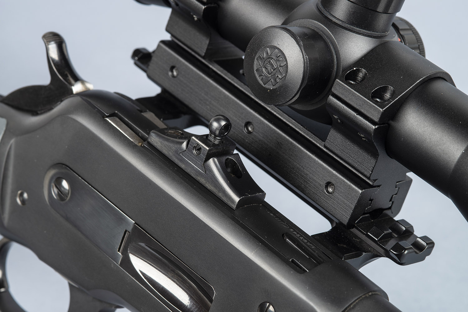 Manca la slitta Picatinny, tradizionalmente presente sulle Boarbuster, ed è presente la predisposizione per il montaggio di una slitta Picatinny disassata di 40 millimetri dall’asse verticale della canna; questa soluzione consente l’impiego di uno strumento ottico di puntamento alla corretta distanza di montaggio. Ricordo infatti che l’azione 1886 ha l’espulsione del bossolo verso l’alto e quindi non permette un montaggio standard dell’ottica. Per facilitare l’acquisizione dello strumento di puntamento è possibile spostare verso sinistra anche il nasello, che quindi possiede un secondo grado di libertà. Non manca la canna filettata.