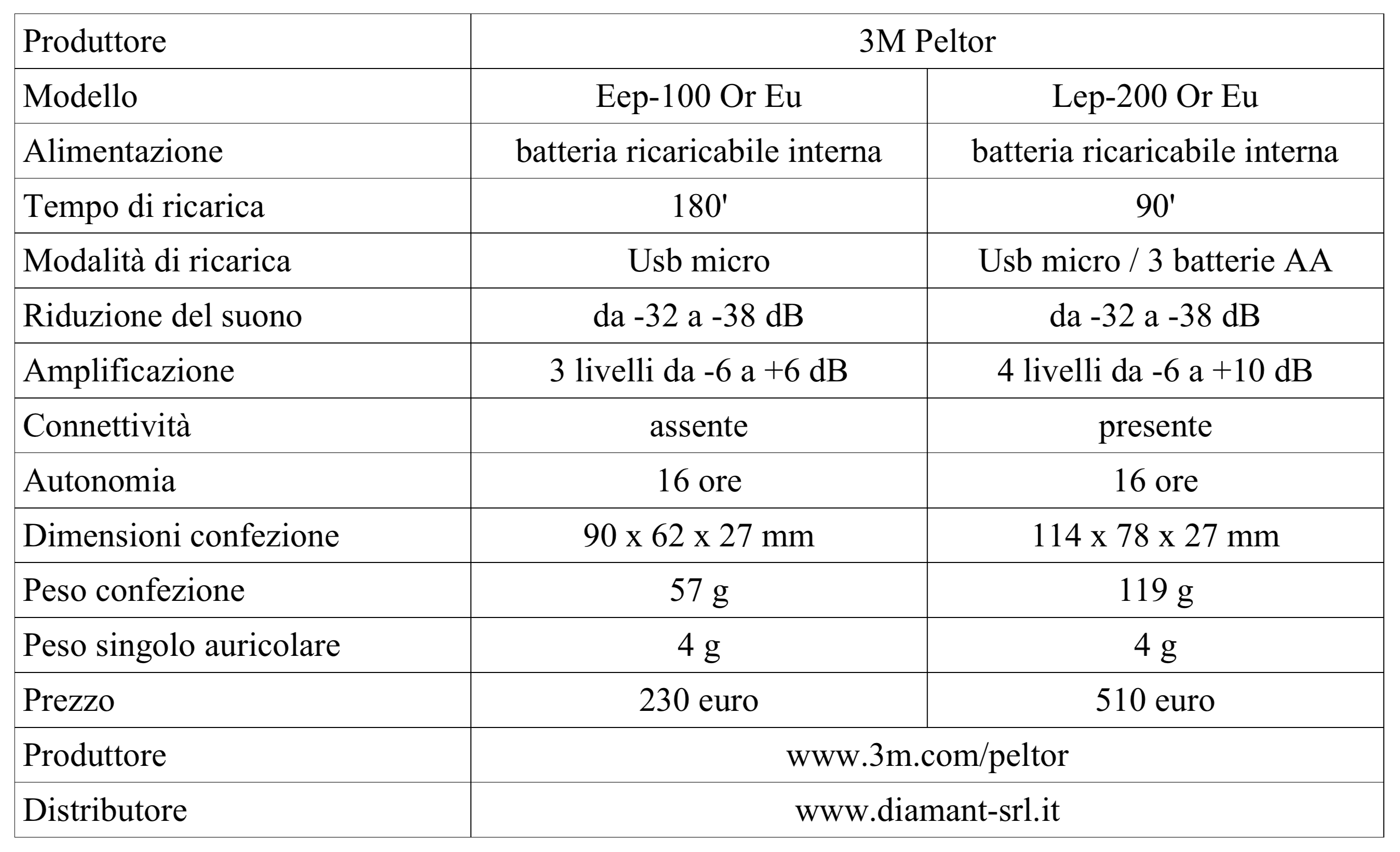 Le linee di prodotto sono due e contemplano un prodotto standard (EEP-100) e uno dalle potenzialità più avanzate (LEP-200). In entrambi i casi, gli auricolari Peltor sono dispositivi ricaricabili in grado di attenuare i rumori dello sparo (tra 32 e 38 dB a seconda degli inserti utilizzati e sempre a patto che siano indossati correttamente) enfatizzando, contestualmente, quelli ambientali. La regolazione è indipendente sui due canali e l’autonomia molto estesa, fino a 16 ore. Quello che distingue il modello più semplice da quello evoluto sono alcuni dettagli: l’entità del guadagno (massimo 6 decibel per il 100 e 10 per il 200), il sistema di ricarica (che nel caso del modello superiore affianca alla porta micro Usb la possibilità d’impiego di 3 batterie tipo AA), il tempo di ricarica (dimezzato nel caso del LEP-200) e la connettività che, nel solo modello di punta, permette la connessione tramite un collare a induzione magnetica a qualsiasi strumento che disponga di un jack per l’uscita audio. L’operatività è garantita da un unico pulsante disposto sull’auricolare.