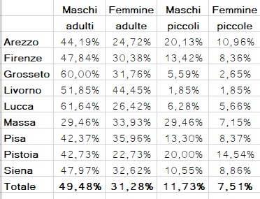 Nell’allegato alla delibera con cui approva il piano, la giunta ha diffuso anche i dati sul prelievo del cinghiale nel 2019 (gennaio-novembre).