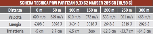 Nel catalogo dell’azienda serba Prvi Partizan, o Ppu, è presente un caricamento destinato al calibro 9,3×62 Mauser, con palla proprietaria del peso di 285 grani: è una combinazione che essenzialmente ha la propria ragion d’essere nella caccia al cinghiale.