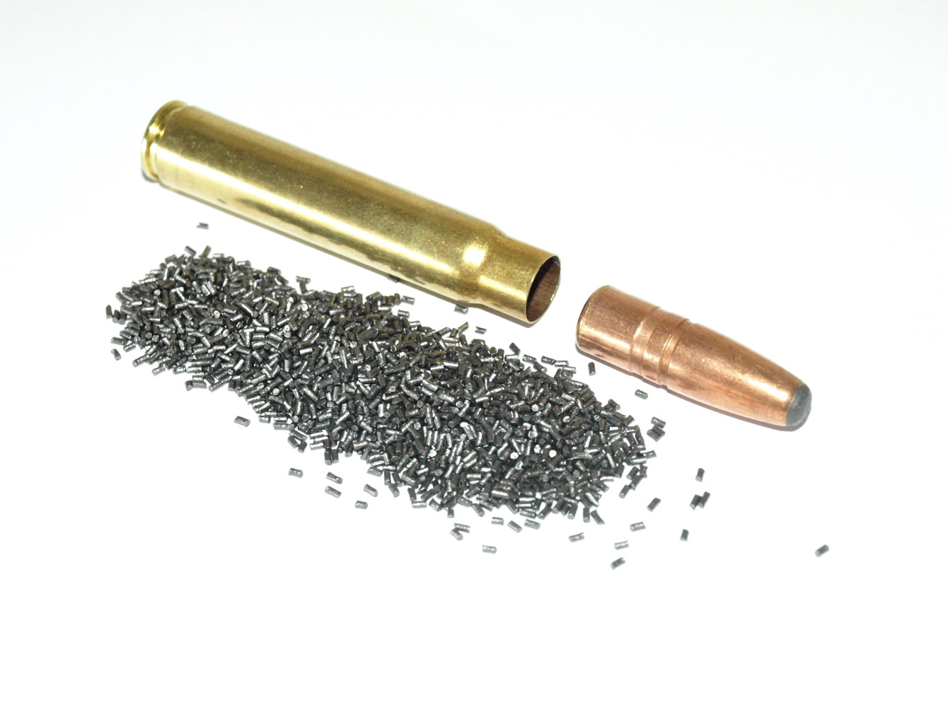 Il proiettile adottato è di tipo soft point con ogiva dal profilo round nose dal peso di 285 grani, pari a 18,5 grammi. La palla (codice B-330) presenta un generoso solco di crimpatura posizionato a circa 8 millimetri dalla base, a sua volta sormontato da un ulteriore incavo destinato a rimanere a vista dopo il corretto assemblaggio della cartuccia.