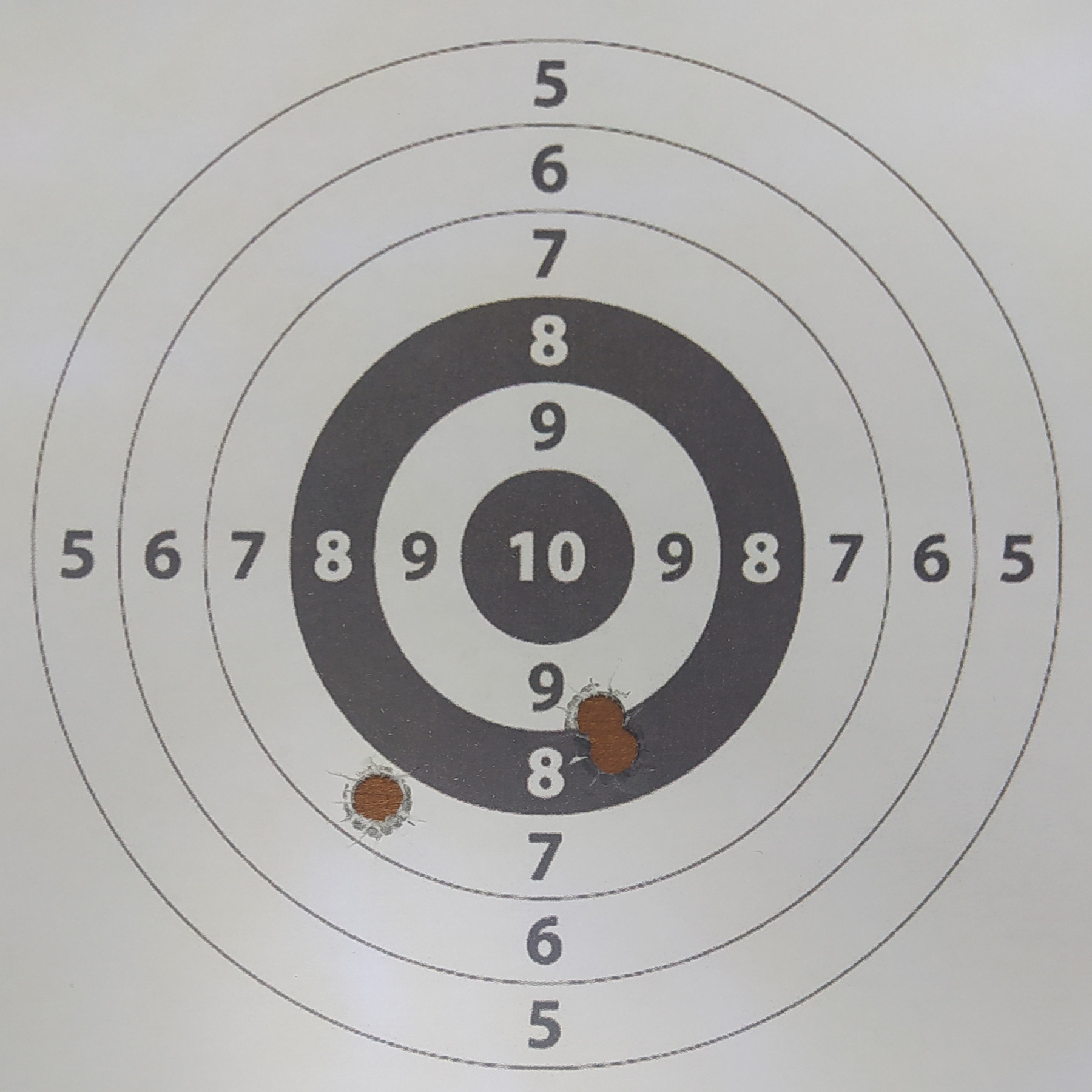All’esito dei tre tiri si è ottenuta una rosata che misura 29 millimetri tra i centri più lontani. Due colpi riescono a toccarsi, mentre il terzo si allontana verso il basso, con buona probabilità frutto di uno strappo. Dai rilievi cronografici ottenuti sul campo si è osservata una velocità media superiore di ben 18 m/s rispetto a quanto reso noto dall’azienda: è di 690 m/s la velocità alla bocca dichiarata a fronte di una media di 708 m/s rilevata su tre colpi.
