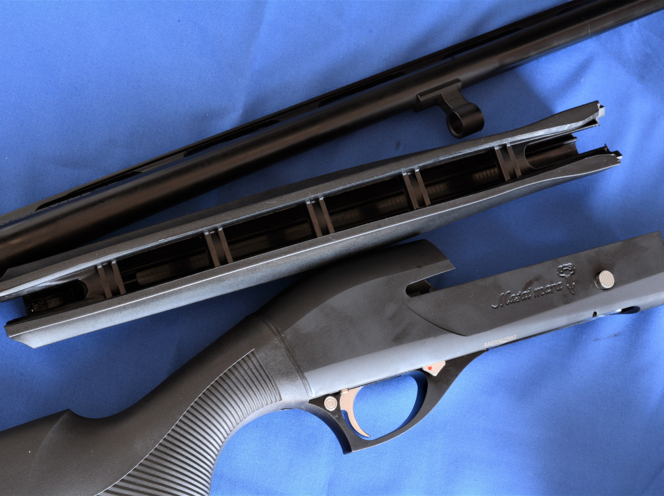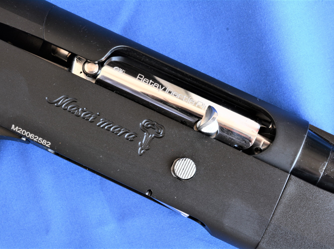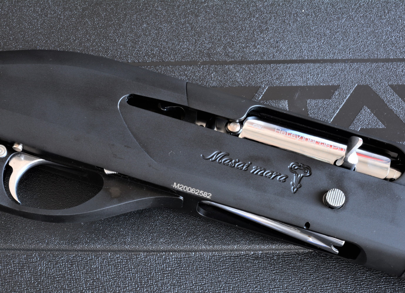 La geometria interna della canna Marabored prevede un’attenta configurazione, con un lungo cono di raccordo di circa 2,5” (più di 6 centimetri) seguito da una canna Overbored che sulla carta dovrebbe consentire un’ottima concentrazione dello sciame dei pallini e un rinculo ridotto. Il cinematismo del Masai Mara Adventure è l’Inertia System with Inertia Plus Rotating Bolt; vuol dire che si è in presenza di un otturatore a testina rotante (con due alette di chiusura) con funzionamento inerziale.