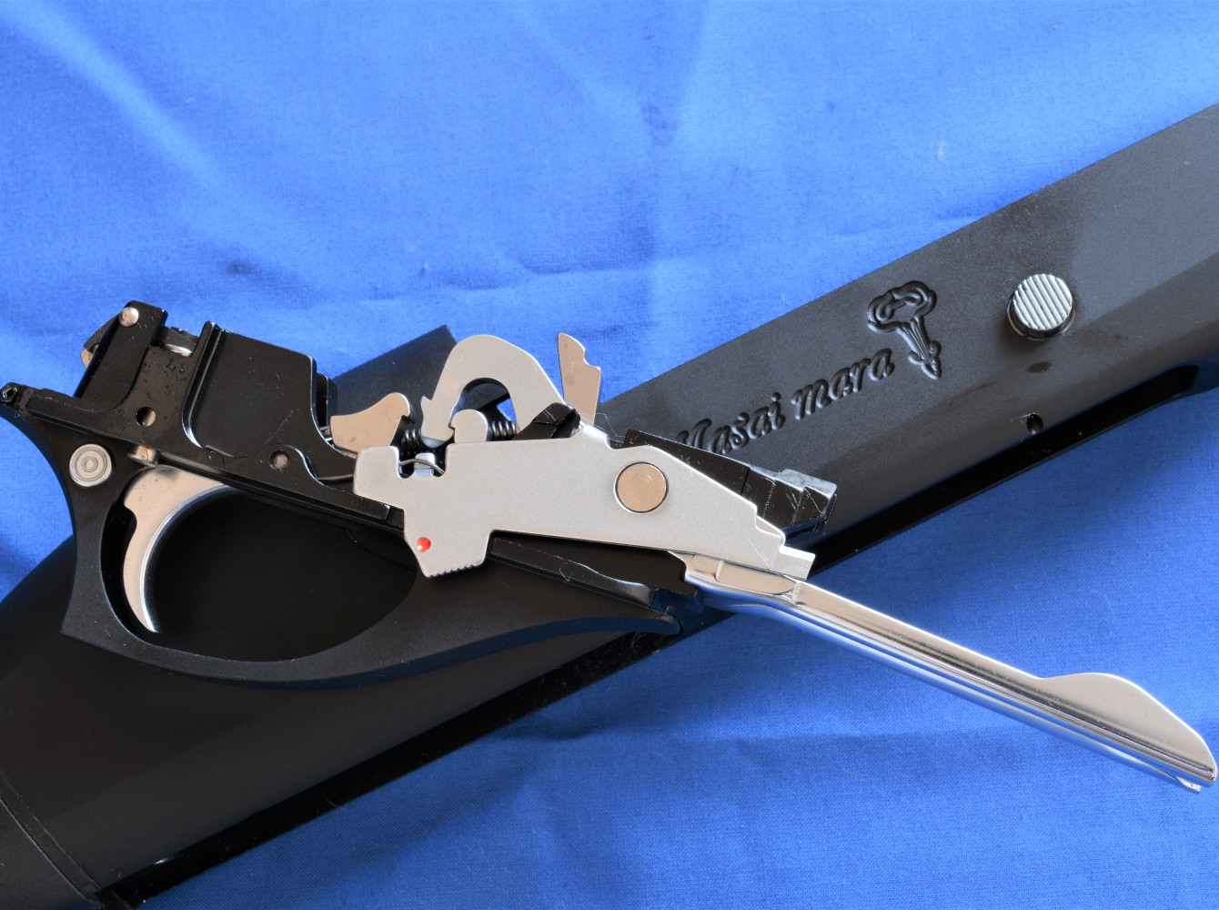 Tra i plus della gamma Masai Mara vi è infatti la possibilità di estrarre tutto il pacchetto di scatto, in alluminio e non in tecnopolimero, con un semplice gesto dopo aver premuto il pulsante e aver caricato il cane azionando la manetta dell’otturatore. Altrettanto rapido è il rimontaggio, dopo aver ovviamente premuto il pulsante di rilascio dell’otturatore per evitare che la leva fermo cartucce interferisca con il reinserimento del pacchetto di scatto. È tutto molto semplice e permette anche di rendere completamente inoffensiva l’arma; senza pacchetto di scatto non si può fare niente.