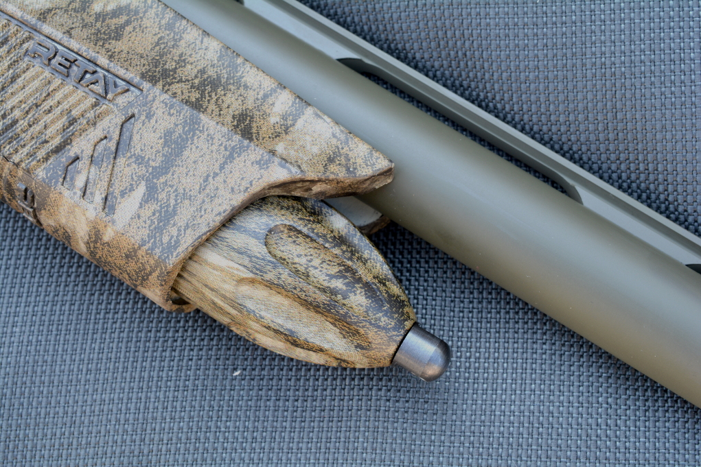 L’otturatore presenta una finitura brunita del corpo, due alette sulla testina e una poderosa unghia estrattrice. Retay garantisce che il suo sistema è in grado di funzionare in ogni condizione operativa, mandando in chiusura l’otturatore in modo preciso e senza incertezze. In effetti una piccola modifica dell’otturatore esiste rispetto al solito e si trova sotto forma di un piccolo anello situato nella parte posteriore dell’otturatore, laddove scorre la camma. Alla prova dei fatti, l’otturatore va davvero sempre anche in chiusura, anche quando si accompagna lentamente con la mano. È una situazione tipica per il cacciatore che ricarica l’arma con l’intenzione di fare il minore rumore possibile per via di eventuali selvatici presenti in zona.