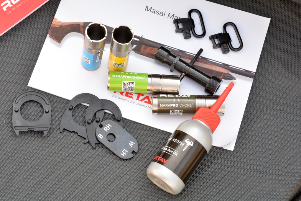 Dal punto di vista balistico, il Masai Mara può disporre di una camera di scoppio da 3” o da 3,5” (magnum o super magnum); il fucile in prova è la versione da 3”. La canna da 30” o 76 centimetri di lunghezza, ma disponibile anche nella versione da 71 centimetri, è equipaggiata con gli strozzatori intercambiabili MaraPro Chokes. Questi ultimi sono lunghi circa 7 centimetri, del tipo interno. Ne sono forniti cinque, negli usuali valori che soddisfano completamente ogni esigenza del cacciatore (skeet, improved cylinder, modified, improved modified e full). Molto ben fatta la chiave per il serraggio e lo smontaggio degli strozzatori; in metallo, è dotata anche di pulisci filetti e dispone di un comodo traversino per l’azionamento.