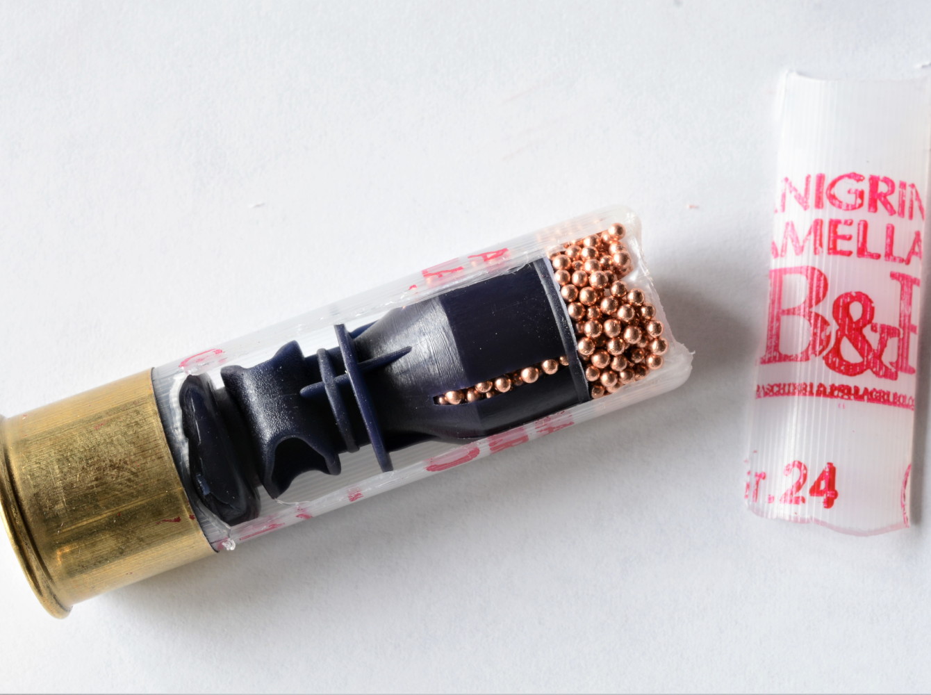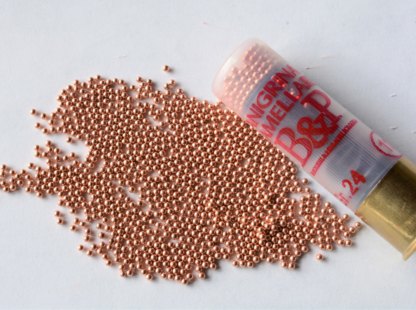 Per una cartuccia destinata all’allodola, e in generale alla piccola migratoria, abbiamo usato un piombo di numerazione piccola: abbiamo scelto l’11 (1,7 millimetri di diametro) che, insieme alla dose di 24 grammi, fornisce un buon pattern di pallini da indirizzare sul bersaglio.