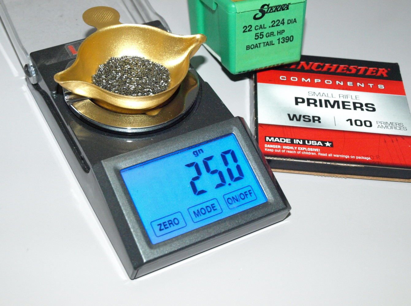 Ho ricalibrato i bossoli, provenienti da diversi cicli di sparo, in full size die Redding ottenendo il ripristino completo delle dimensioni del corpo. La rettifica dei colletti realizzata con l’asportazione dell’ottone eccedente ha riportato la lunghezza complessiva alla misura di 44,50 millimetri esatti. I bossoli Federal originariamente provenienti da cartucce commerciali presentavano la crimpatura dell’innesco, motivo per cui, alla prima ricarica, è stato necessario rimuovere le relative punzonature. Per l’innesco ho utilizzato apparecchi Winchester di tipo small rifle. L’acronimo Wsr richiama tanto il produttore quanto la tipologia di primer.