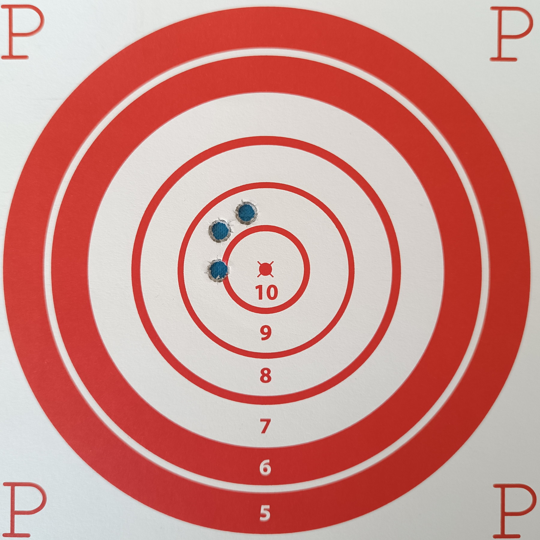 La cornice ambientale ha lasciato registrare una temperatura di 10 °C, con umidità del 77%, pressione di 1.018 millibar e venti moderati da 6 a 10 chilometri orari, provenienti da nord-ovest. La distanza tra i due centri dei fori più lontani nella rosata di tre colpi ottenuta misura 20 millimetri.