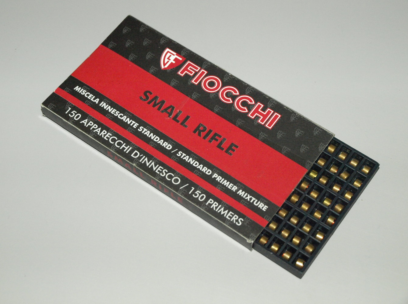 Provenienti da diversi cicli di sparo, i bossoli Fiocchi sono stati ricalibrati per tutta la loro lunghezza in full size die Redding dedicato al piccolo calibro. Successivamente sono stati trimmati alla misura di 44,50 millimetri per mezzo di una fresa Lee precision in associazione alla dima dedicata.
