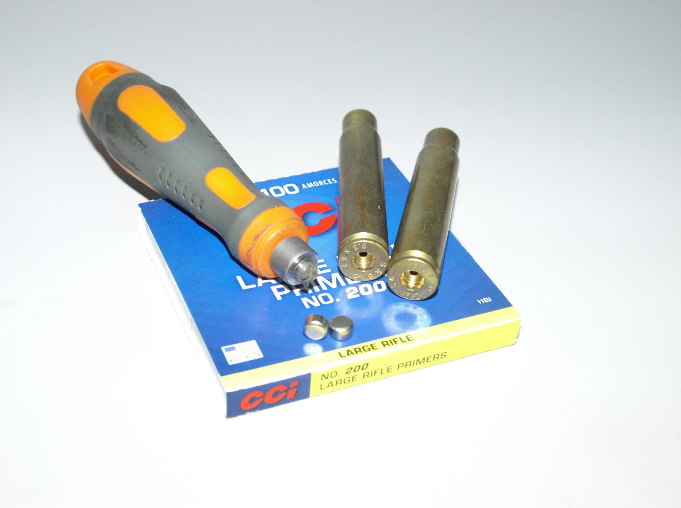 I bossoli utilizzati per assemblare le cartucce del calibro 9,3×62 Mauser sono a marchio Sellier & Bellot, di primo sparo, ragion per cui è stato necessario operare per il loro completo rispristino. Per ricalibrare il corpo del bossolo, preventivamente lubrificato, si è fatto ricorso alla matrice full length sizing die a marchio Hornady.