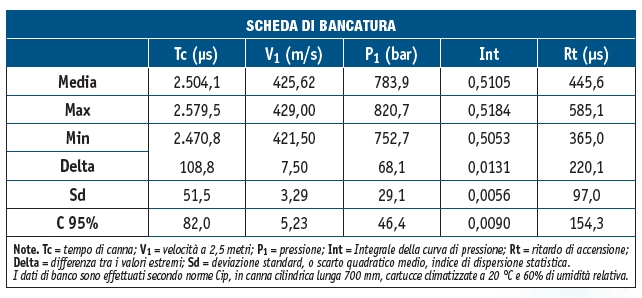 La dose che abbiamo individuato è di 28 grammi, equilibrata; non necessita di un bossolo magnum. La numerazione scelta è il 4 (3,1 millimetri di diametro). La chiusura è una classica stellare a cinque pliche, eseguita con bobina Sp2 di Omv. L’altezza della cartuccia finita è 57,80 millimetri, per un peso complessivo di 40,85 grammi (media di dieci distinte misurazioni).
