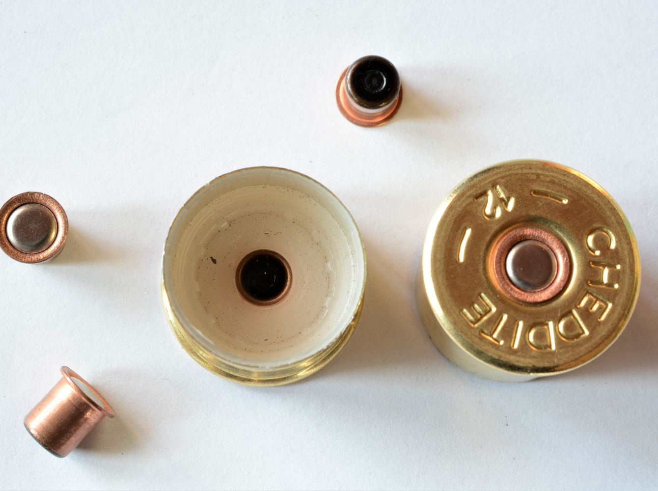 Riporremo le nostre cartucce nella solita scatolina in cartone della Siarm proporzionata al calibro; i dati di ricarica sono preziosi e vale la pena non appuntarli su foglietti volanti o affidare il loro ricordo alla memoria. Il bossolo è un Cheddite da 70 mm di altezza, traslucido con un fondello ottonato non esagerato alto 12 millimetri: un onesto tipo 2. L’innesco è il potente Cx 2000 della stessa Cheddite, caratterizzato dal corpo ramato e dalla vernice protettiva copri foro di vampa di colore nero.
