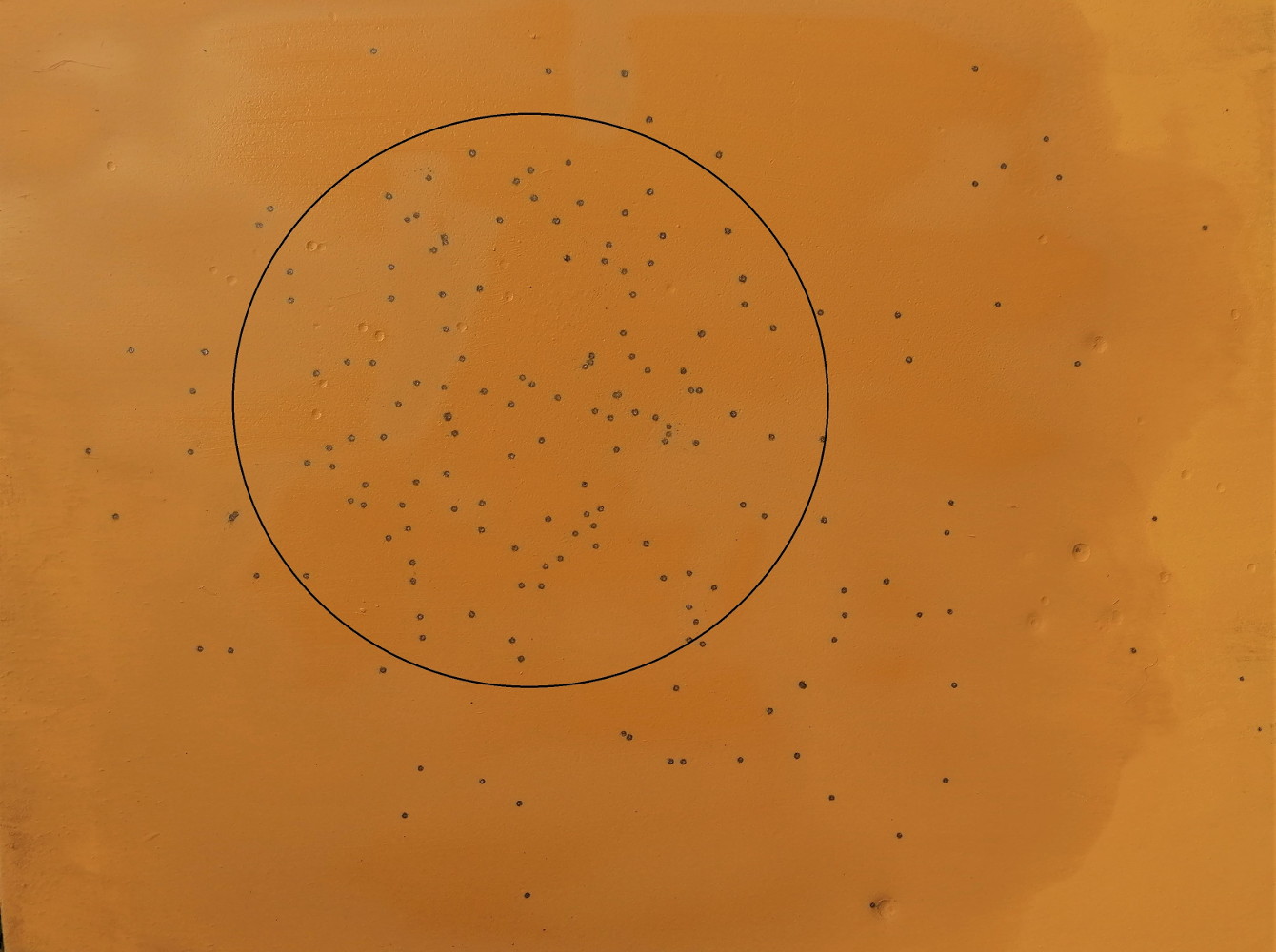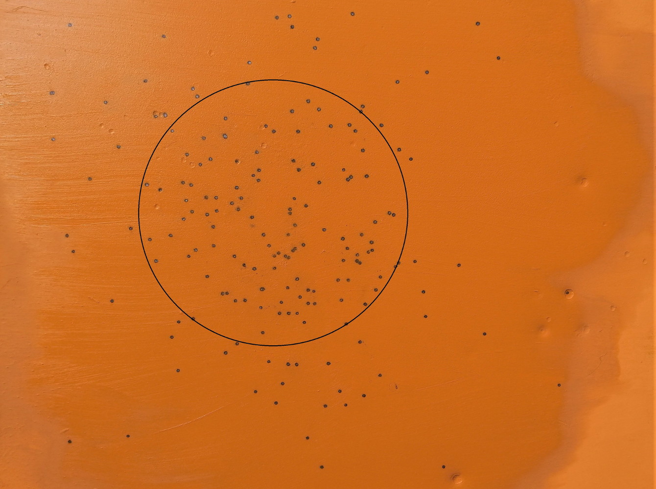 La distanza è impegnativa, ma riteniamo che la cartuccia possa essere impiegata nei suddetti contesti venatori e a queste distanze di ingaggio. I 30 metri non lasciano scampo, per di più con un tre stelle, neppure a una zanzara che malauguratamente si dovesse trovare a passare davanti al nostro fucile; molto buona la rosata a 35 metri che per forza di cose comincia a essere considerata come la distanza limite di impiego. Notevole la forza di impatto dei pallini sulla lastra di acciaio.